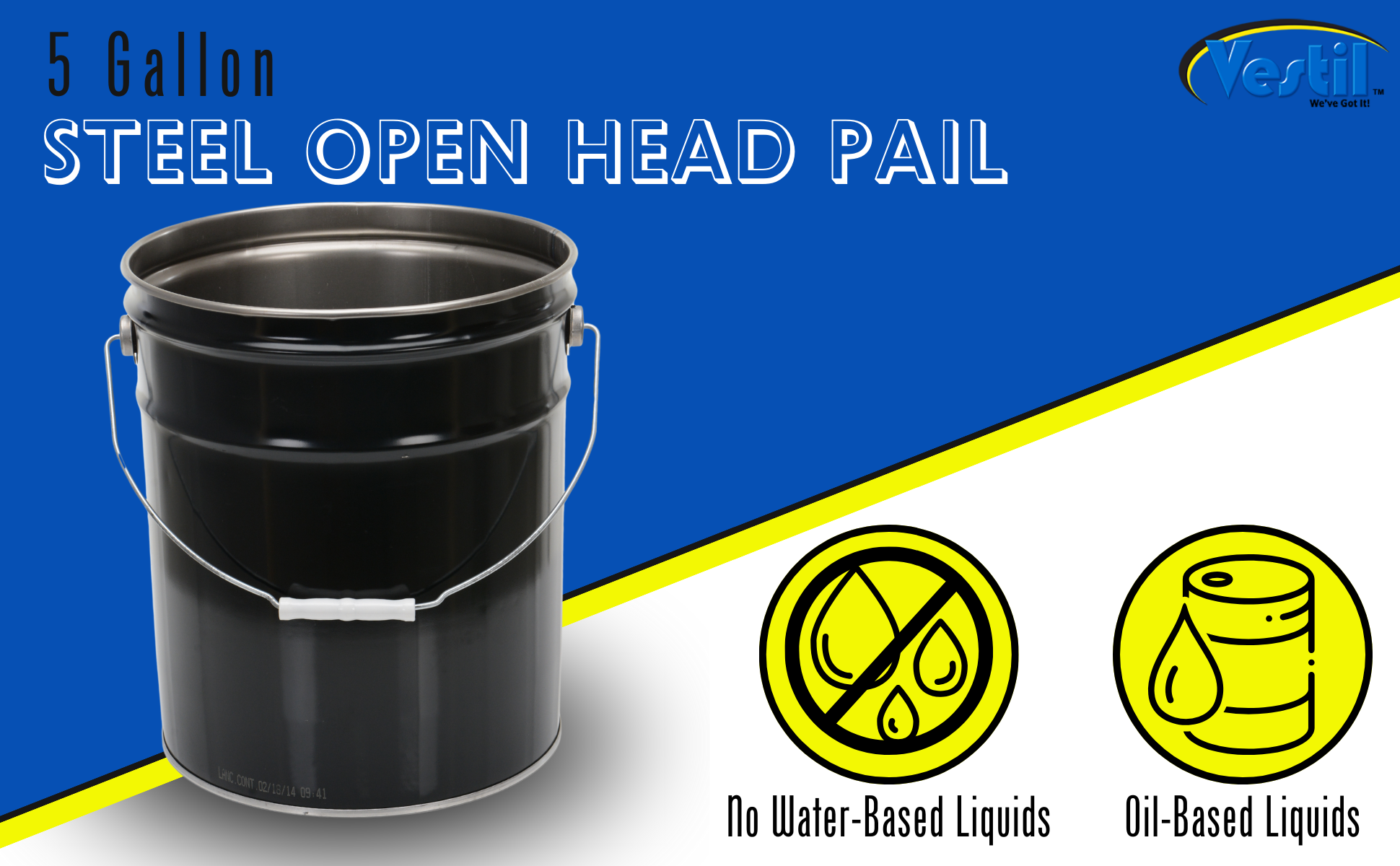 PAIL-STL-RI-UN PAIL-STL-RI-UNSteel UN Rated Pail 11-3/4 In. x 11-3/4 In. x 13-3/8 In. 5 Gallon BlackGauge Between: 24/28