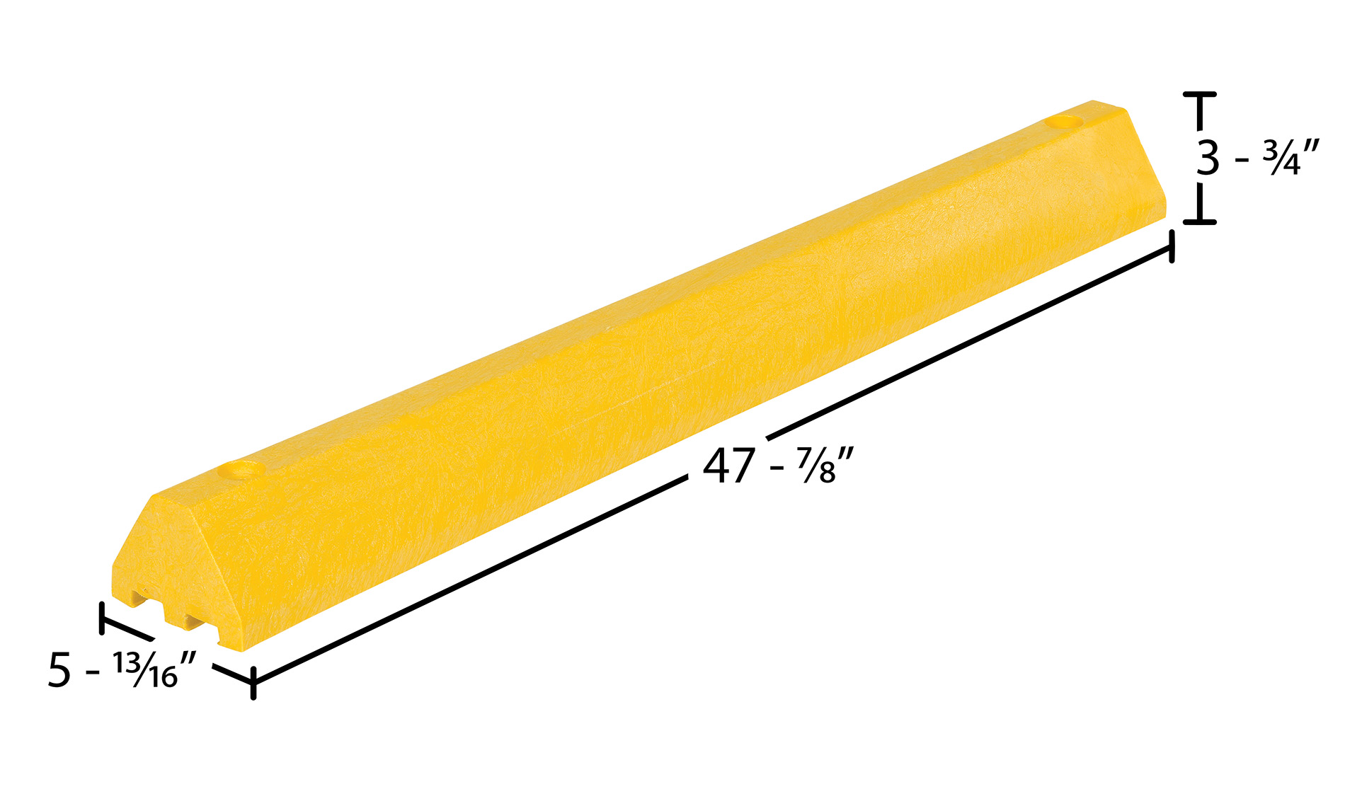 Recycled Plastic Car Stop 48 In. x 6 In. x 4 In. YellowThe car stops protect people and property from drivers in dangerous areas. Constructed of lightweight recycled plastic. One person installation. Can be moved for seal coating, snow removal, change of location. Resists marring by oil, road salt, sunlight, and chemicals. Resists rotting, termite damage and corrosion. No costly painting or maintenance. Hardware kits sold separately.