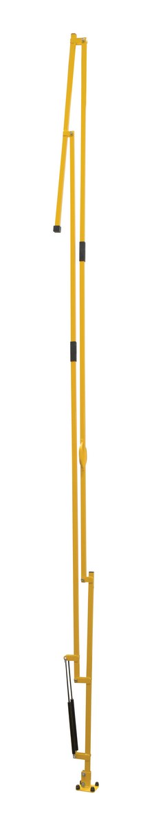 The Safety Lift Gate can be lifted out of the way with a single finger. Simply lift and the self folding action folds the gate in a vertical position. With the gas strut cylinder, the gate can be lifted with the slightest of effort. The Lift Gate is manufactured of steel tubing with a yellow baked-in powder-coat finish for added toughness. The unique design can be either wall or floor mounted. The Lift Gate is fantastic for mounting on loading dock doors to help reduce the possibility of people falling.