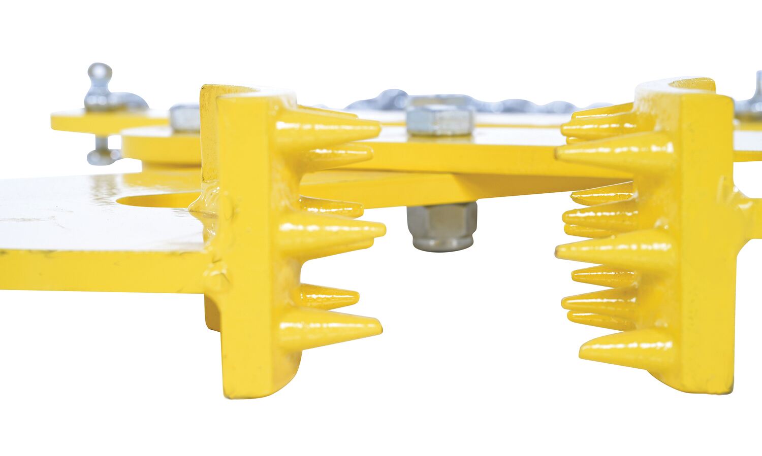 PAL-14 - Cam closing action provides maximum gripping strength and reduces pinch points. Safety handle enables easier positioning and removal. Grips both metal and wood pallets with biting action.