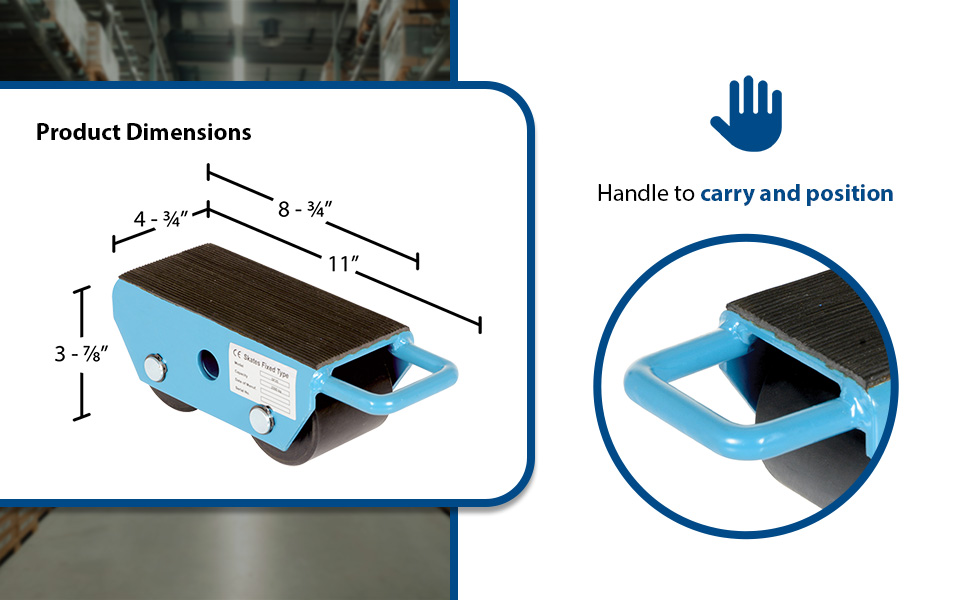 | Steel Fixed Machinery Skates 10-3/4 In. x 4-3/4 In. x 4 In. 5,000 Lb. Capacity Blue | Uniform Capacity (tons): 2.5 Roller Material: Nylon | 10 |
