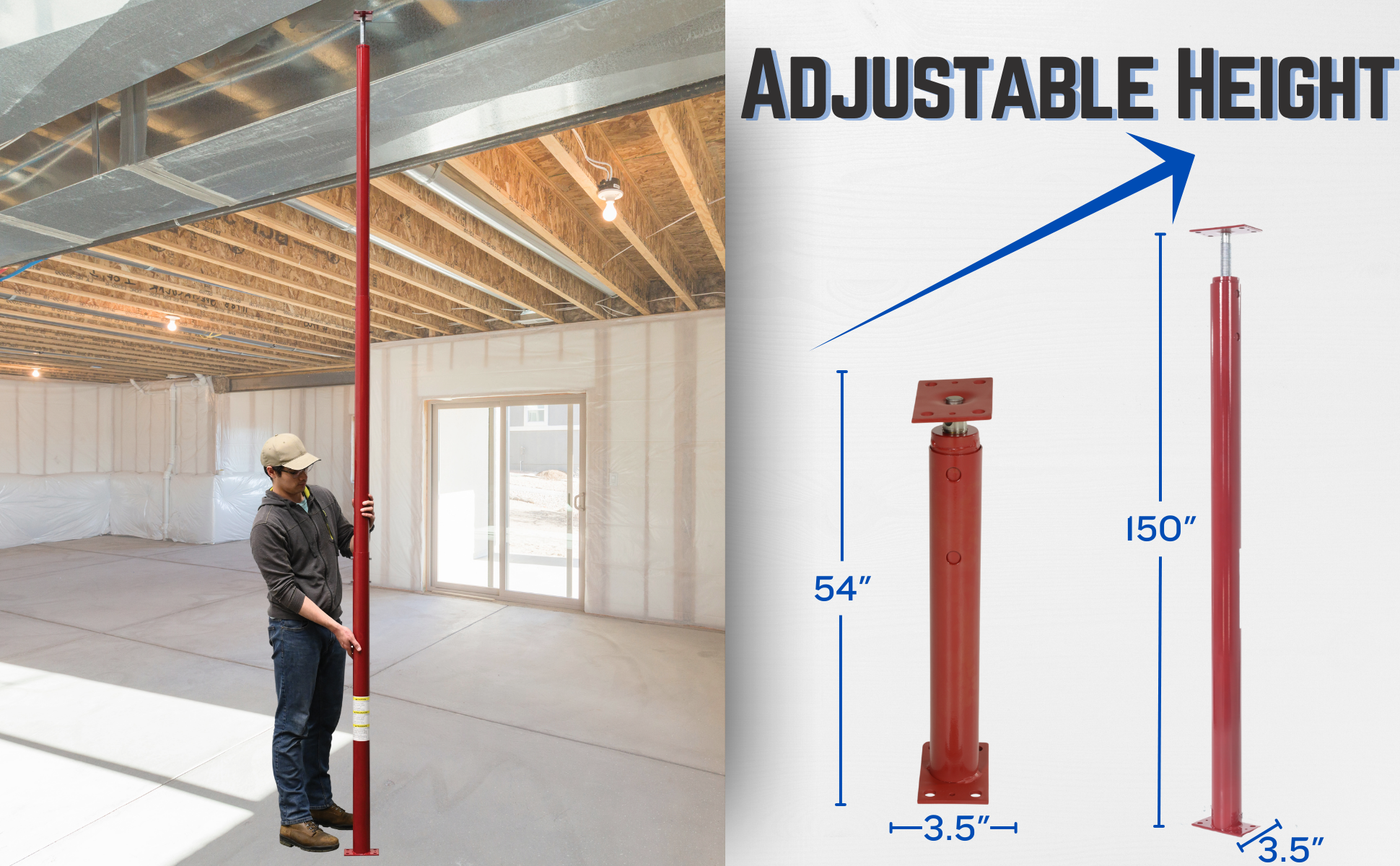FJB-150 FJB-150Basement Floor Jack 150 In. Maximum Height 2,588 Lb. Capacity RedHeight Minimum/Maximum (in.): 54 to 150