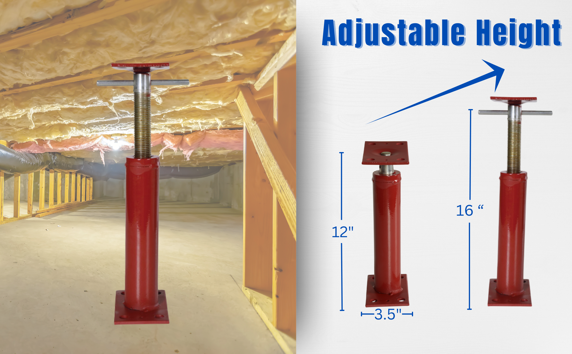 FJB-16 FJB-16Basement Floor Jack 16 In. Maximum Height 9,738 Lb. Capacity RedHeight Minimum/Maximum (in.): 12 to 16