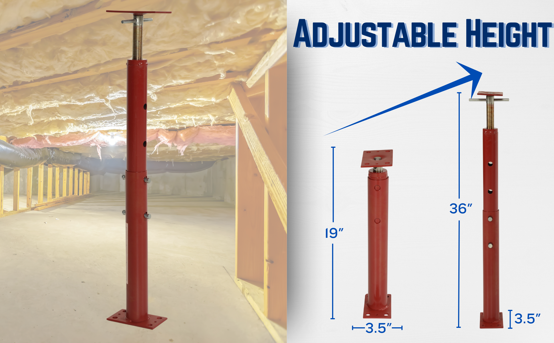 FJB-36 FJB-36Basement Floor Jack 36 In. Maximum Height 6,863 Lb. Capacity RedHeight Minimum/Maximum (in.): 19 to 36