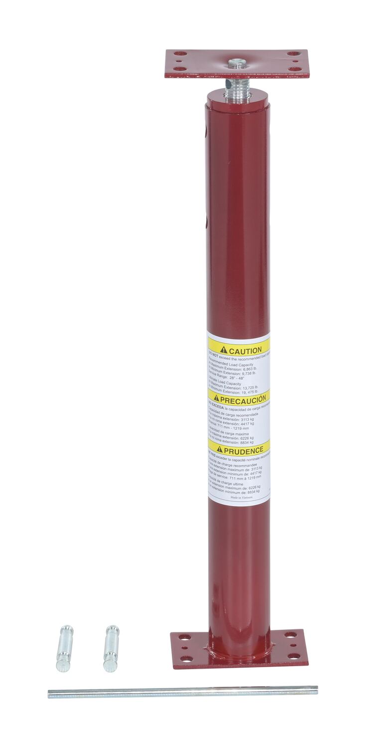 FJB-48Provide extra support for leveling and stabilizing floor beams and joists during construction and repairs. Telescopic style with removable pins lets you properly position the brace for better leveling. Includes turning bar for easy height adjustment. Rugged all welded steel construction. Red oxide finish.