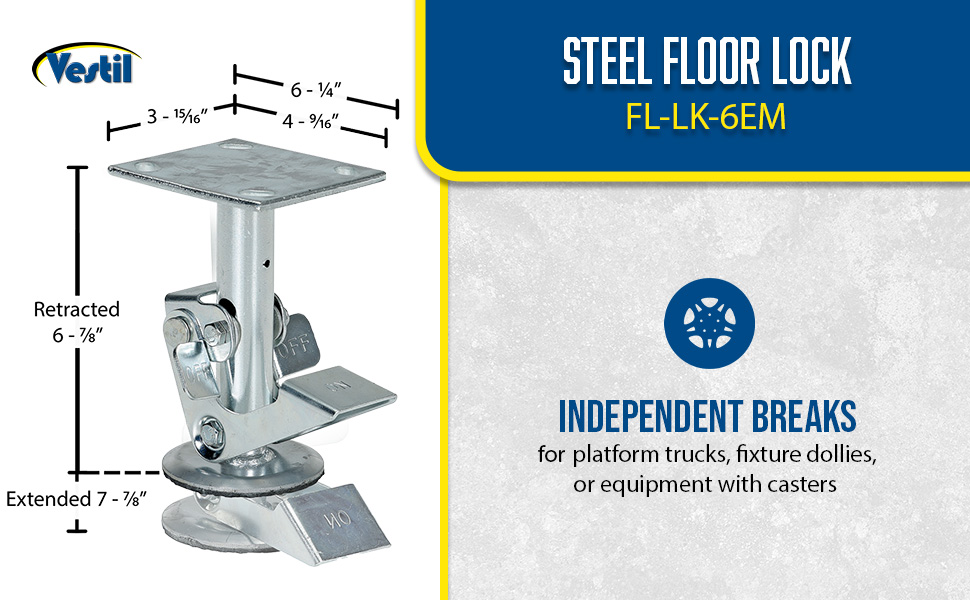 | Steel Top Mount Floor Lock 4-7/8 to 5-5/8 In. Height Silver 1,200 Lb. Capacity | Caster Diameter (in.): 4 Mount Height (in.): 5-5/8 | 4 |