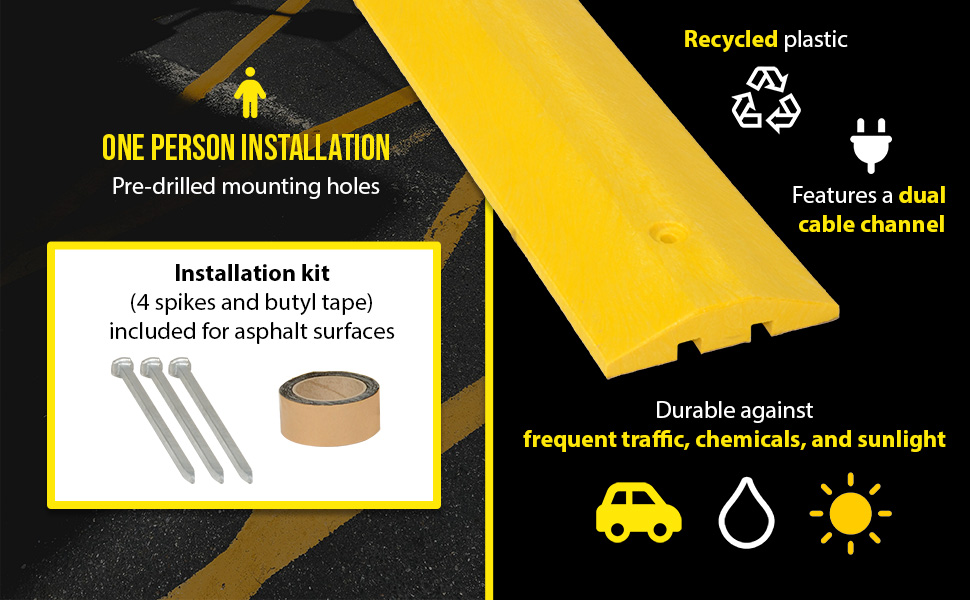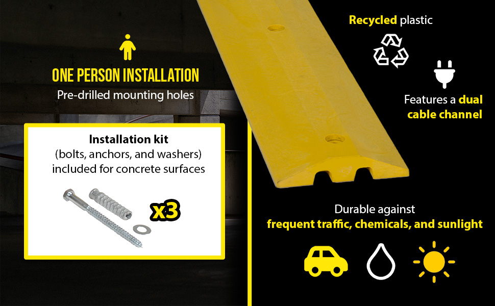 | Plastic Heavy Duty Speed Bump Asphalt Hardware 72 In. x 12 In. x 2-1/4 In. Yellow | Compression Strength Per Square Inch (lb.): 3200 Number of Mounting Holes: 4 | 43 |