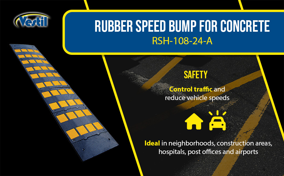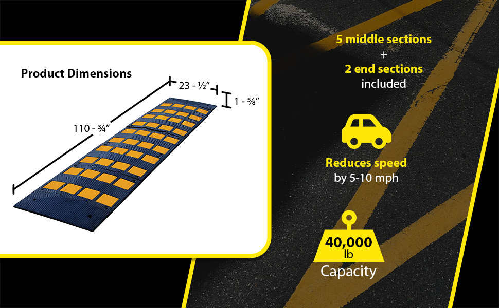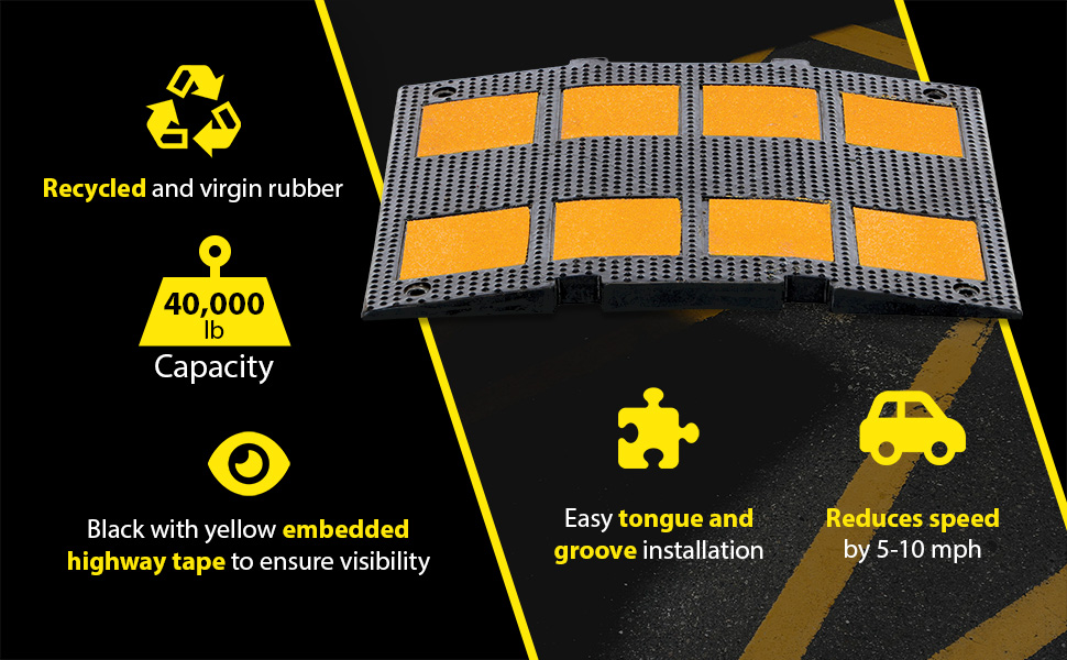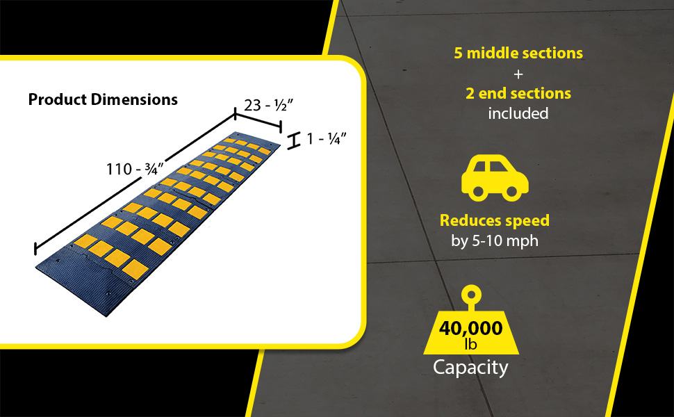 RSH-108-24-A RSH-108-24-ARubber Speed Hump Asphalt Hardware 110-3/4 In. x 23-1/2 In. x 1-5/8 In. 40000 Lb. Capacity Black / YellowUniform Capacity (lb.): 40,000