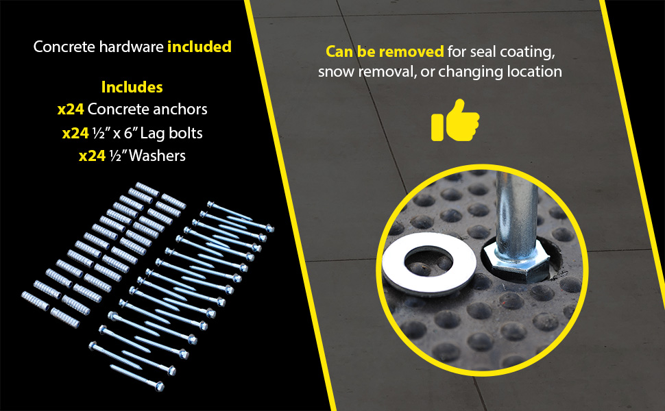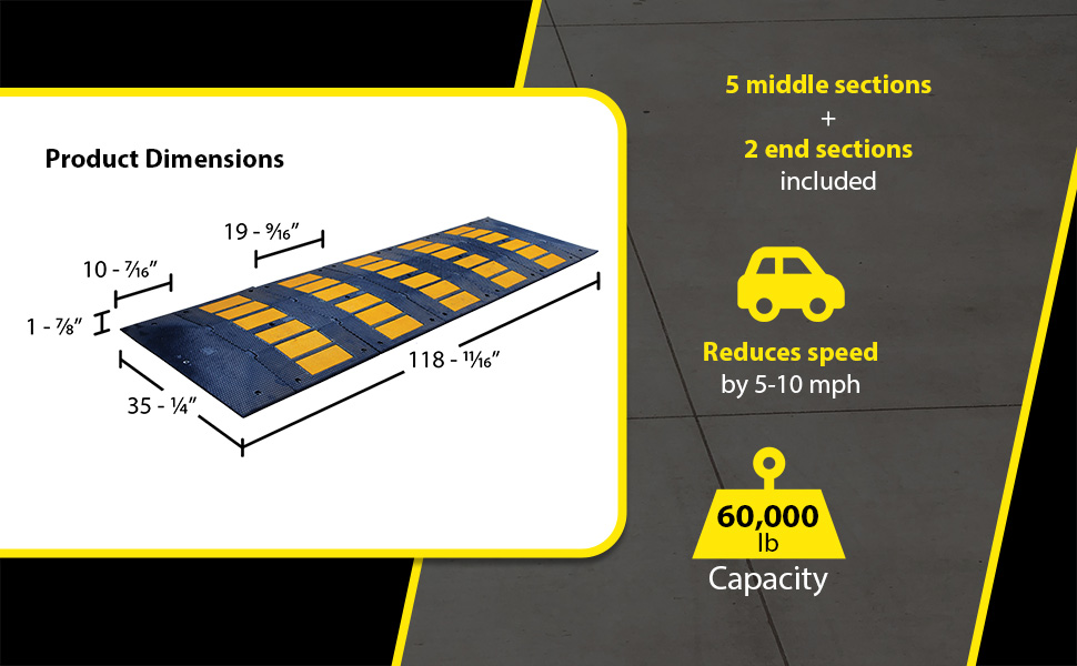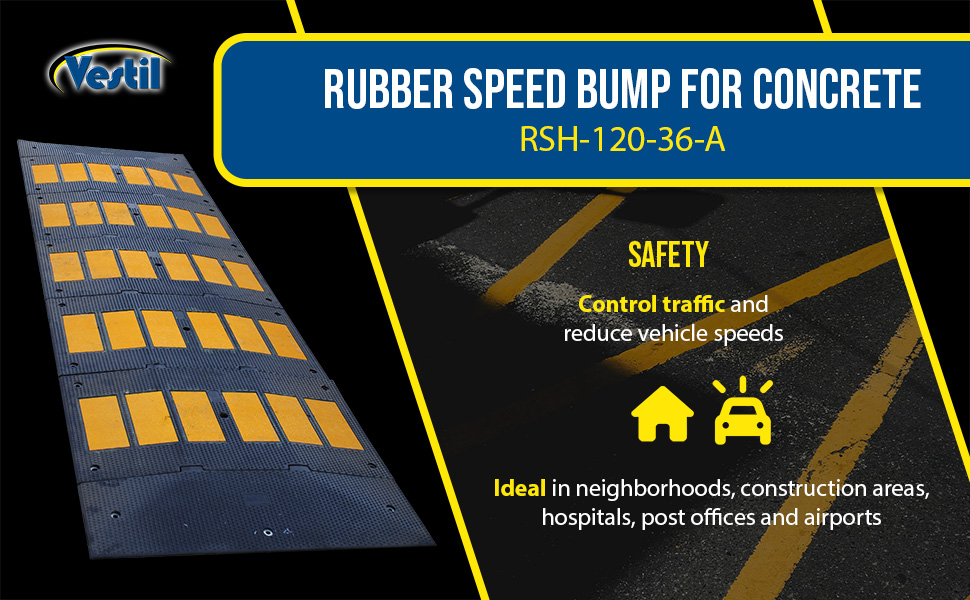 RSH-120-36-C RSH-120-36-CRubber Speed Hump Concrete Hardware 118-11/16 In. x 35-1/4 In. x 1-7/8 In. 60000 Lb. Capacity Black / YellowUniform Capacity (lb.): 60,000
