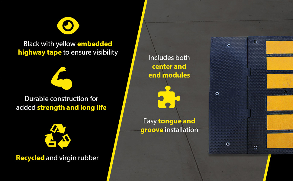 Series RSH are constructed of recycled and virgin rubber. Units are black with yellow embedded highway tape to ensure high visibility. Units include (5) center and (2) end module's.