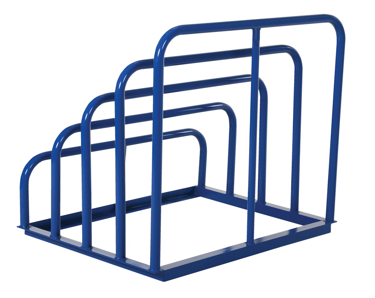 Store various sizes of sheet goods in the vertical position for easy viewing of stock. These sheet racks are perfect for use with multiple sizes of material. Four bays with different heights to increase visibility of stored materials. Available in all welded steel construction, model VHSR-4, or bolt together construction, model VHSR-4B. Bolt together units feature adjustable-width uprights. Capacity per bay is 1,500 lbs. Unit is supplied with lag down points. Baked in powder coat finish for added toughness. The knock-down sheet rack, model number VHSR-4BA-KD ships at a lower freight class averaging 50% savings versus the welded model number VHSR-4. |