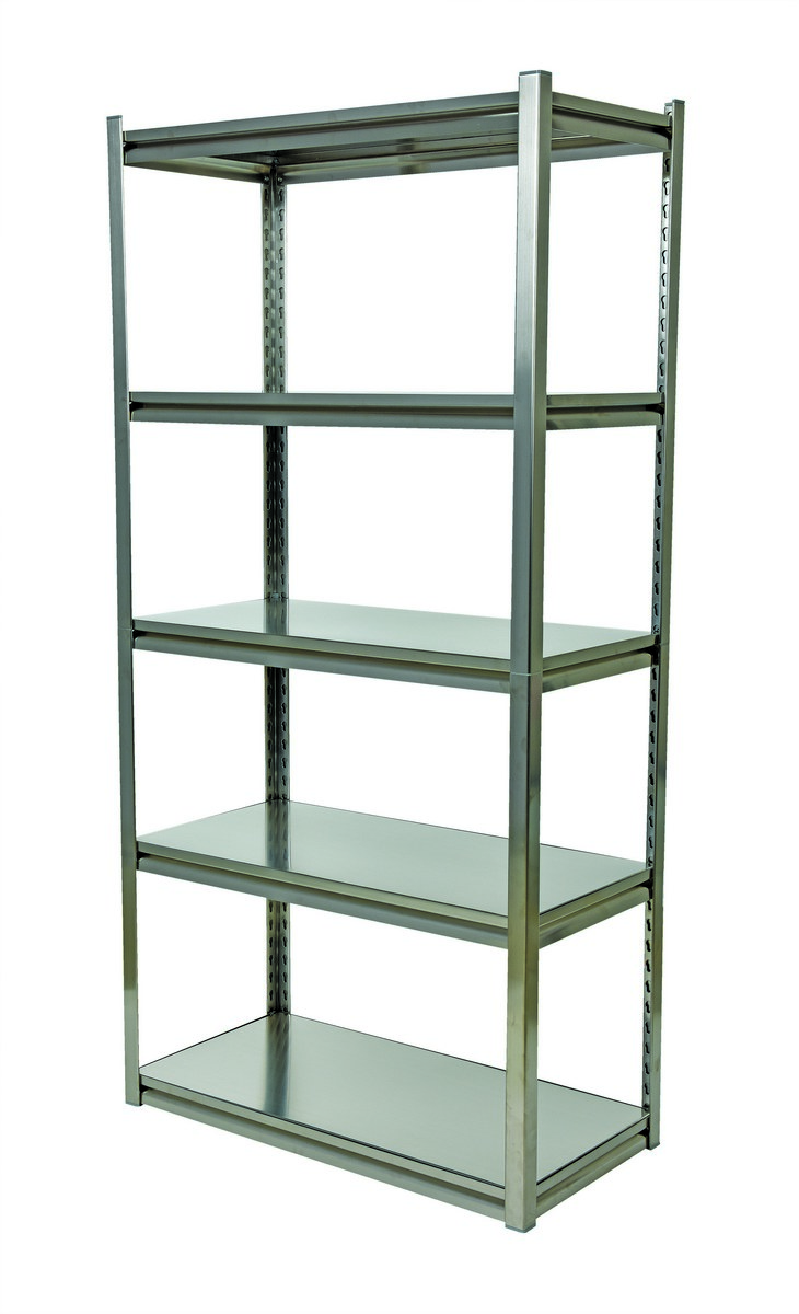 High quality stainless steel solid shelving is made of type 304 stainless steel construction with brushed finish. Each model includes five (5) adjustable shelves with a uniform capacity of 600 lbs. per shelf. The 18 gauge thick shelves are adjustable in 1-1/2" teardrop increments. Two-piece corner posts design includes plastic connectors. Shipped knock-down, easy assembly.