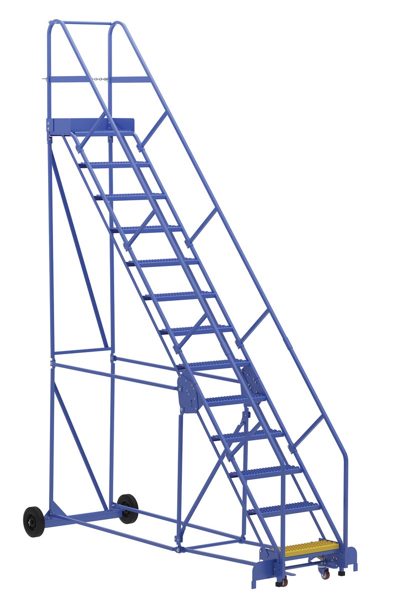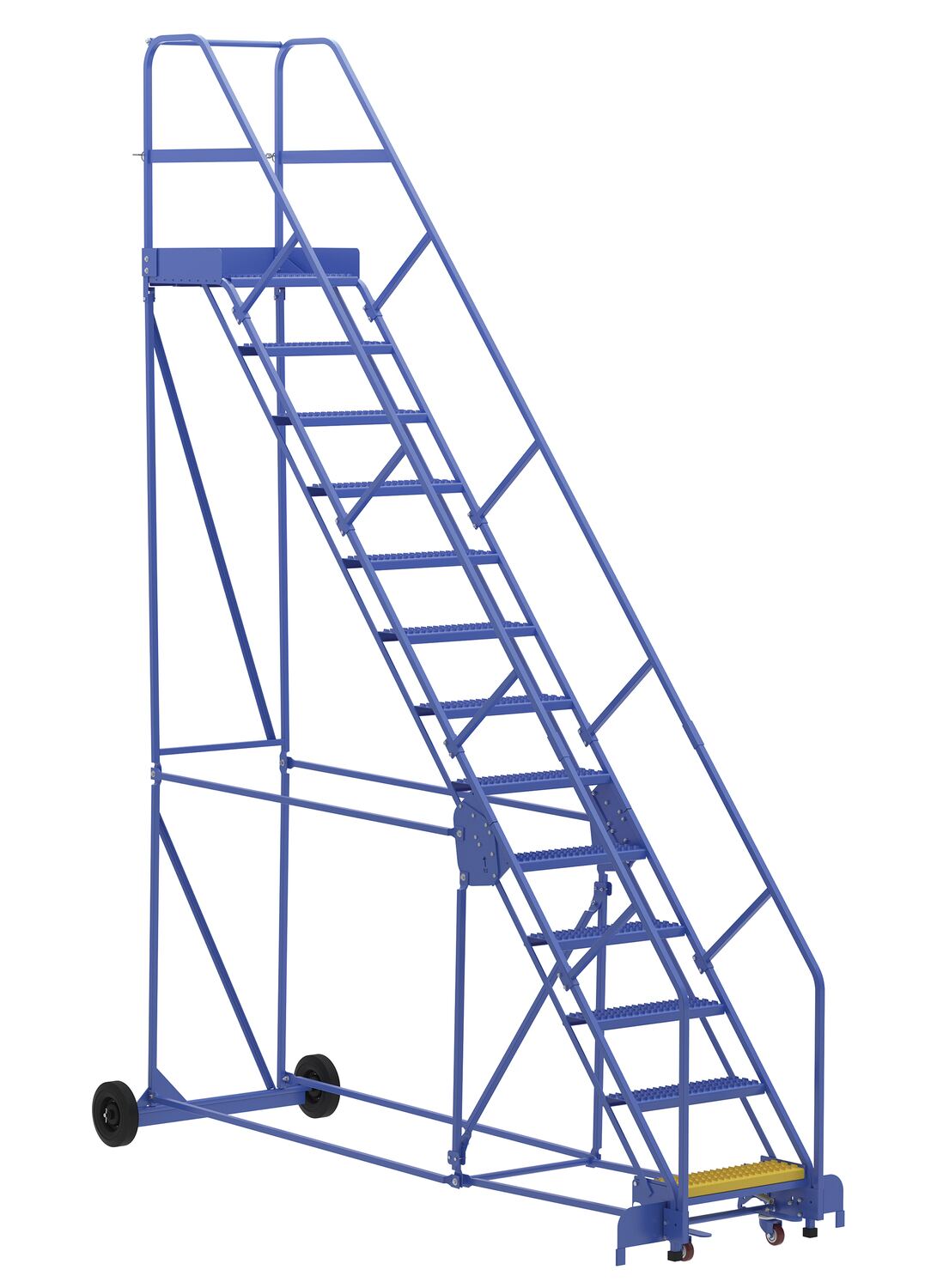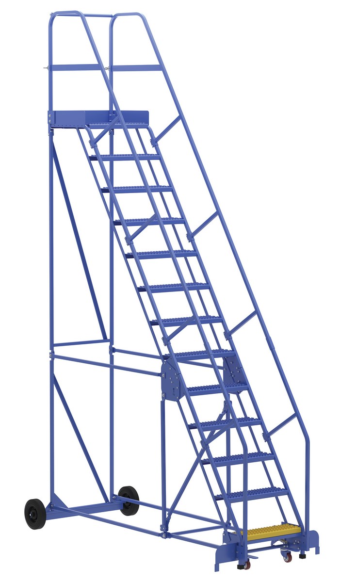LAD-15-14-G-EZ LAD-15-14-G-EZSteel Rolling Warehouse Ladder 50 Degree 15 Grip Strut 23-9/16 In. Step Width 350 Lb. Capacity BlueUniform Capacity (lb.): 350