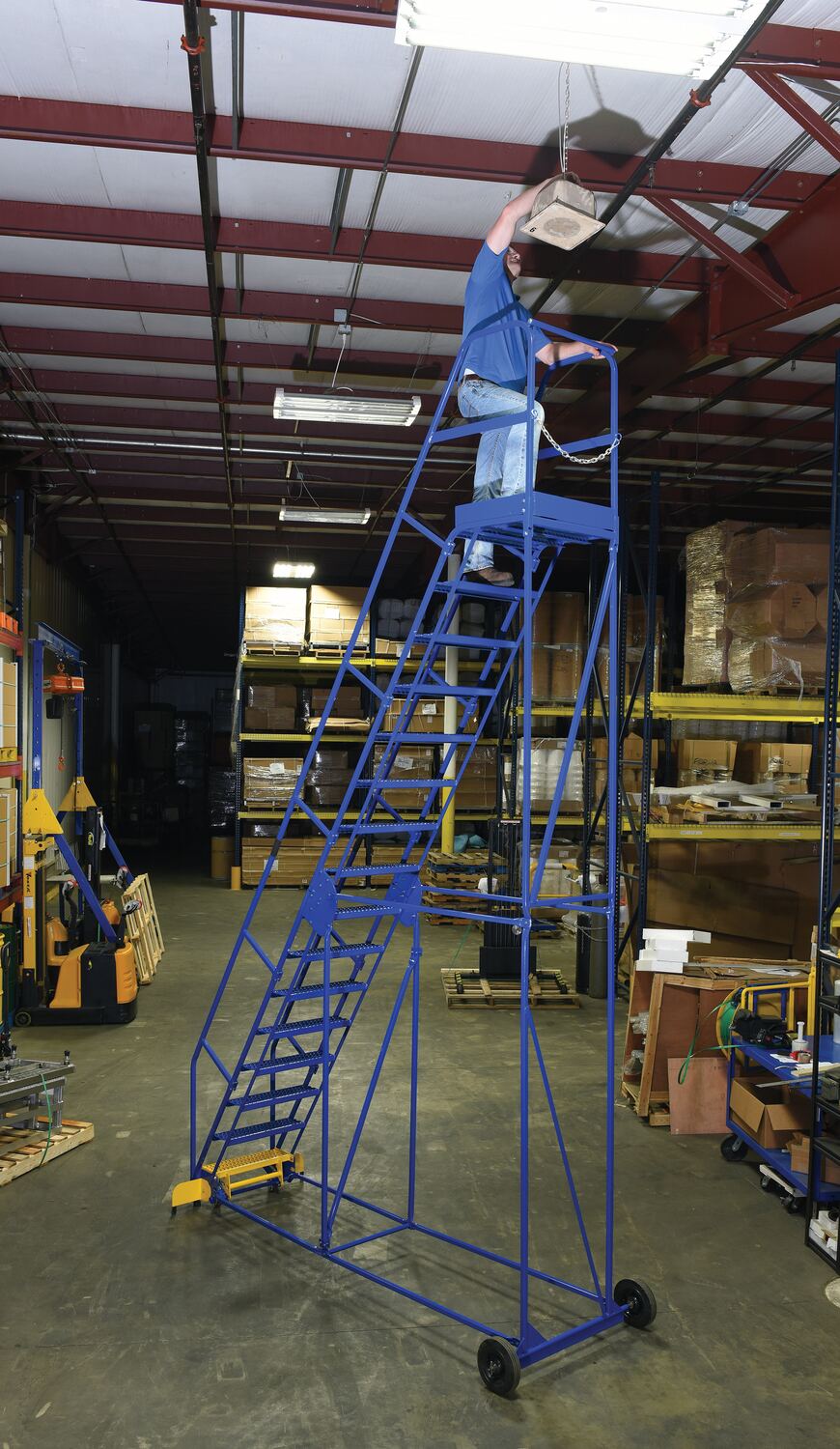 LAD-12-14-G-EZ LAD-12-14-G-EZSteel Rolling Warehouse Ladder 50 Degree 12 Grip Strut 23-9/16 In. Step Width 350 Lb. Capacity BlueUniform Capacity (lb.): 350
