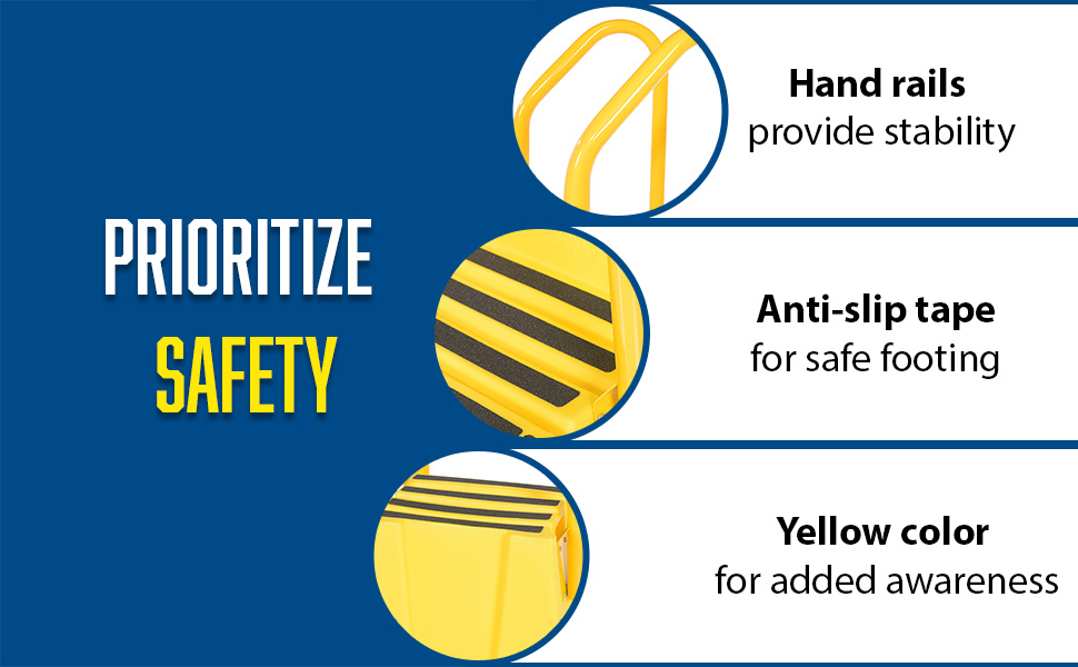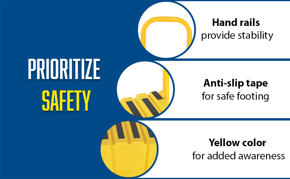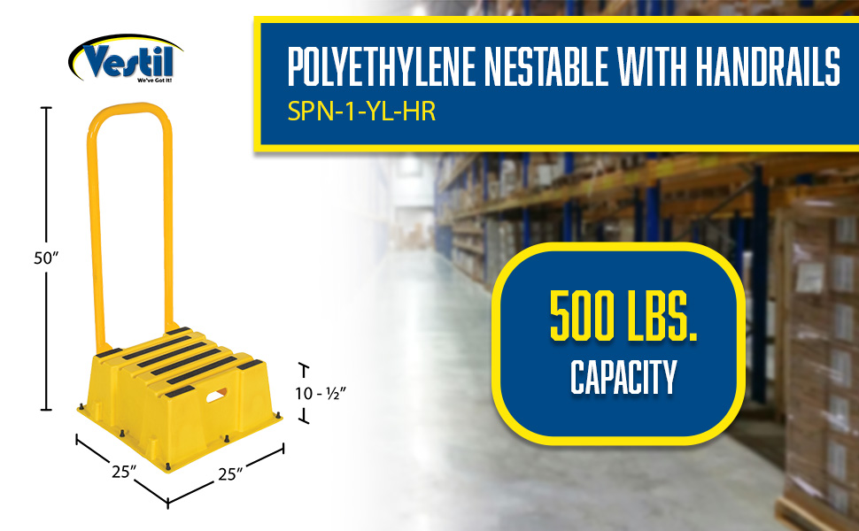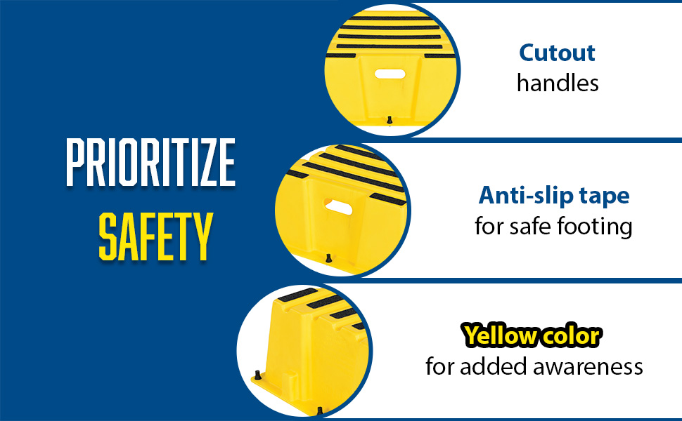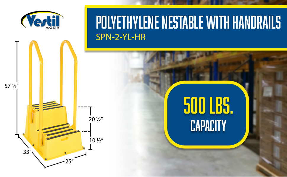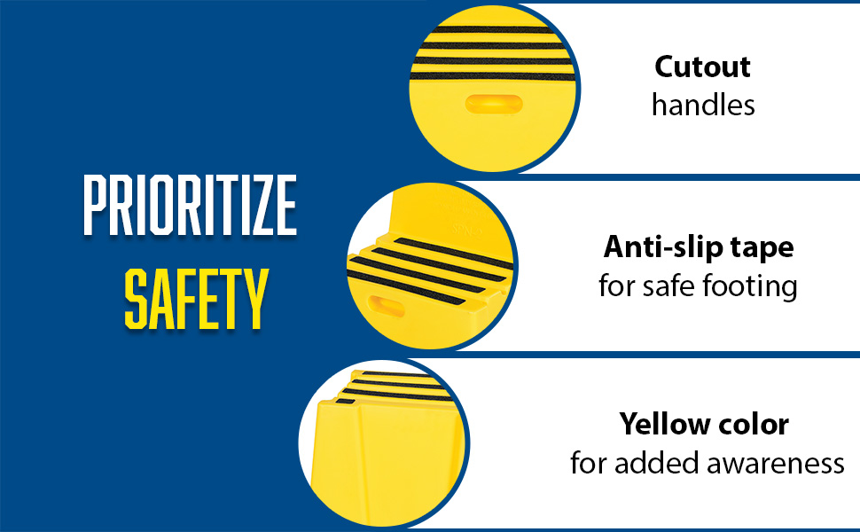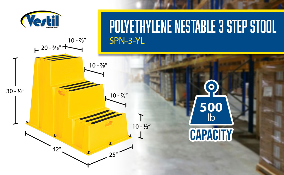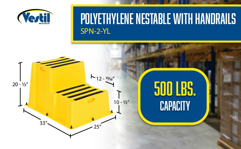 A poly step stool is a great asset for on the go or in a permanent setting. A lightweight design with front and side cutout handles, allow the user to easily transfer the stool to a preferred spot. The taped step surfaces ensure safe footing while traversing up and down the steps. Includes bolt on handrail and casters. The hand rails height allows the unit to be pushed or pulled into the desired position, minimizing bending and twisting by the user. Steps can be nested to minimize footprint when not in use.
