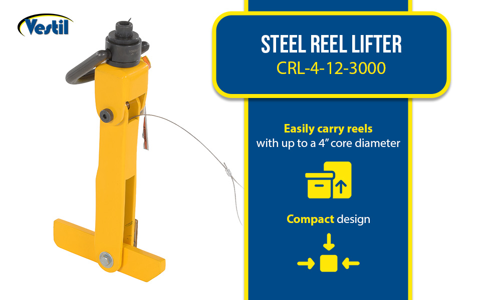 CRL-4-12-3000 CRL-4-12-3000Steel Reel Lifter 2-1/2 In. to 4 In. Core Diameter 3000 Lb. Capacity YellowUniform Capacity (lb.): 3,000