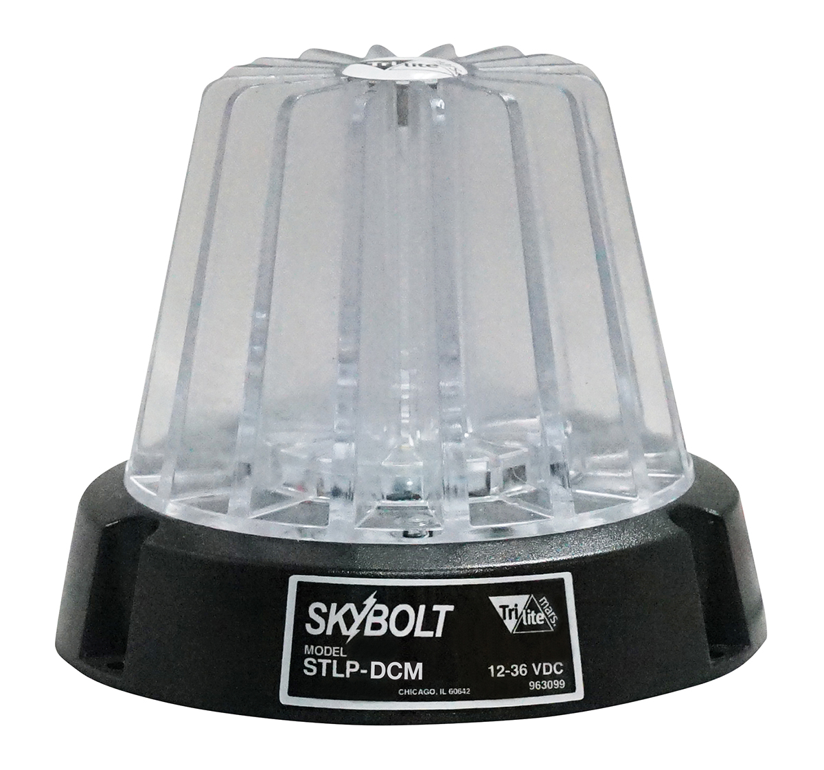 The Fork Truck LED DC Strobe Beacon is driven by a powerful LUXEON LED, high intensity "pops" of light are seen through the finned lens of this unique beacon. A patented "light pipe" design ensures that light travels easily from an internal LED through the translucent outer fins, catching the eye of pedestrians, motorists, or shop personnel. Made from rugged polycarbonate, it's virtually indestructible! It is watertight and will operate in all types of weather. Ideal uses include warning signaling for safety and utility vehicles, lift trucks, elevated work platforms, and heavy equipment. Choice of clear or colored lenses to indicate warning for a variety of 12-36VDC signaling applications. Available in permanent or magnetic mounts. Dome colors available: Amber, Blue, Clear, Green, or Red.