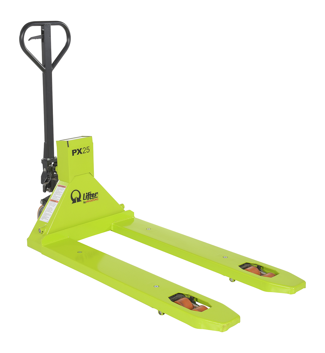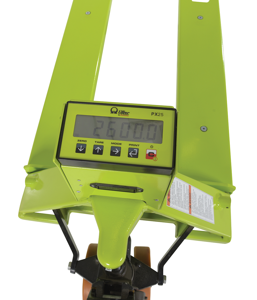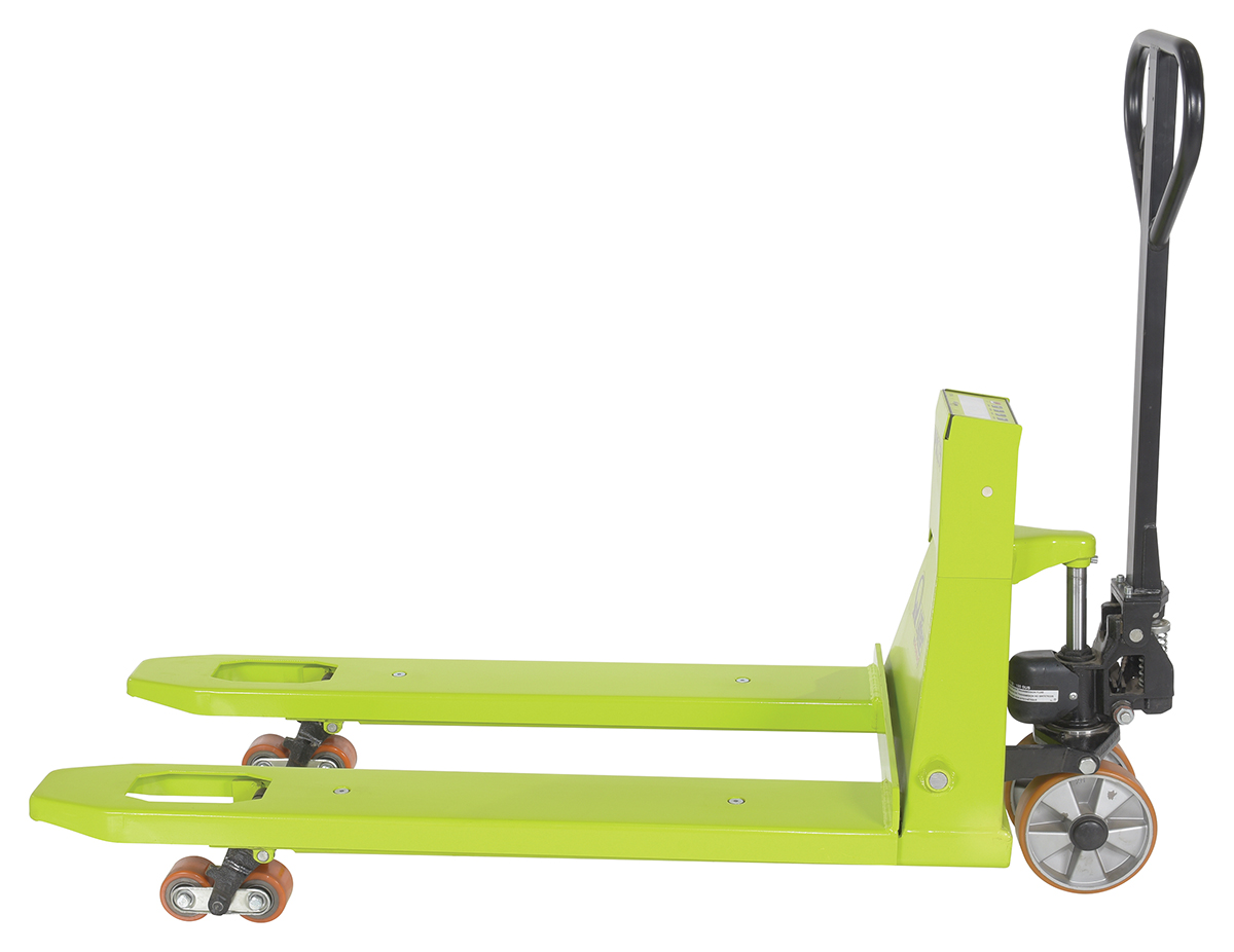The Pallet Truck with digital scale is ideal for shipping and dock personnel. The pallet truck is designed of steel for resistance against damage throughout day to day use. A bright finish allows the units to be visible to other personnel, both near and far. The extended steering handle creates a more ergonomically friendly position while distributing products from work area to work area. Easily maneuverable in tight spaces. Scale is raised closer to user for a visibility.
