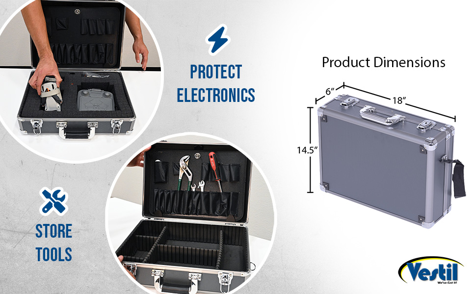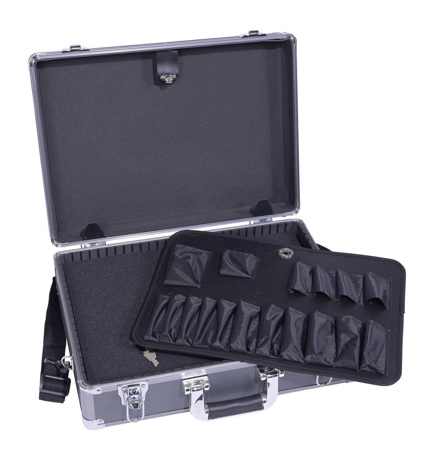 An Aluminum Carrying Case is a great way to store and transfer tools. The aluminum construction is hardy and can withstand the harsh elements of daily use, keeping items safe. With a compact design, the unit is perfect for on the go or left in a stationary place. Sleek smooth finish promotes simple handling.