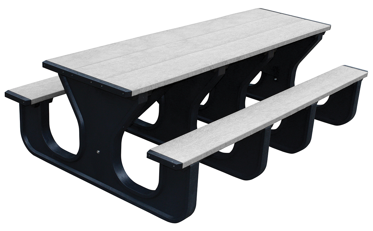 | Recycled Plastic Picnic Table Rectangle Walk Thru 28 In. x 96 In. 2000 Lb. Capacity Black Leg Gray Top | Uniform Capacity (lb.): 2000 Table Top Width/Length (in.): 28 x 96 | 405 |
