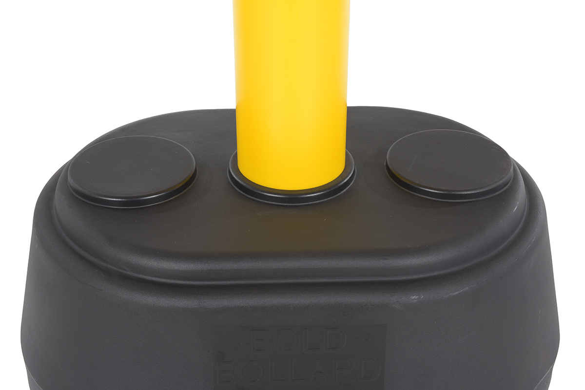 A Plastic Bollard with fillable base is a great alternative to traditional permanent bollards. The plastic units can be filled with a variety of substances for a more stable base or left empty for simple movement. If bollards are contacted the lightweight design minimizes damage to both parties involved, unlike steel bollards. If the bases are filled and are too heavy to be moved manually, there are built in fork pockets to ensure quick movement with a fork truck or fork lift.