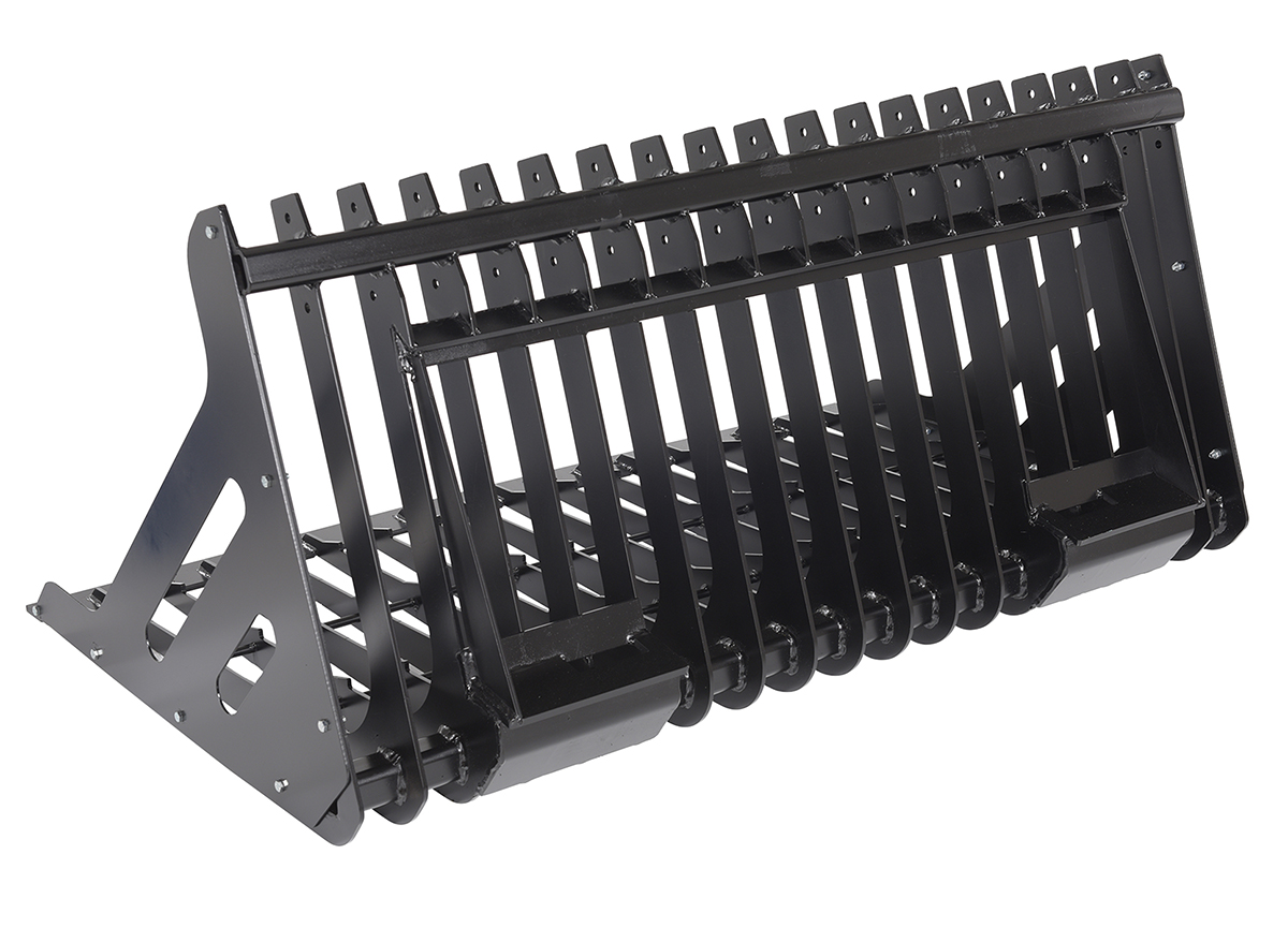A skid steer rock grater bucket works wonders in the landscaping and construction industries. With a low profile design, along with an immense structural volume, it makes loading and unloading heavy rocks as easy as ever. With a simple attachment, connecting to an existing skid steer is as quick as can be. Once in place, the bar style bottom platform is ready to transport heavy loads and minimize manual labor.
