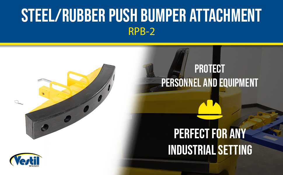 This hook base bumper is a nice addition to any industrial setting. With quick and seamless attachment, the unit is able to be used immediately. The base is constructed of steel to keep up well with the wear and tear of daily use. The front push bumper, made of rubber, helps to minimize any damage and abrasion that may occur. Steel portion of unit is powder coated for built in added toughness.
