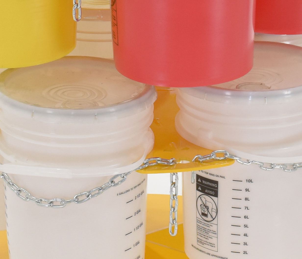 PAIL-T2-CAR-10-CK PAIL-T2-CAR-10-CKSteel 5 Gallon Pail Carousel Rack, 10 Pails W/ Casters 350 lbs. Capacity Per Shelf YellowCapacity Per Shelf (lbs.): 350 lbs.
