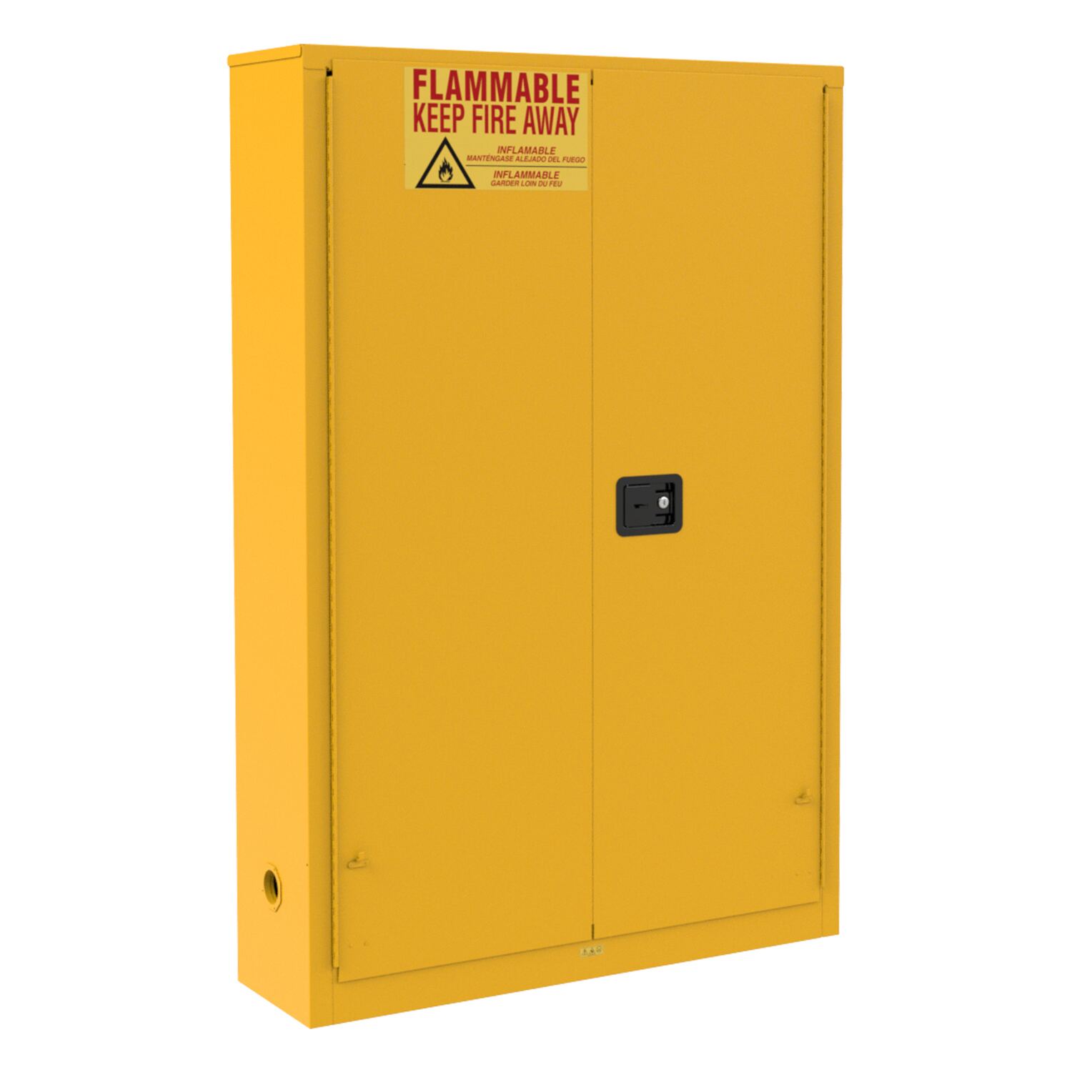Safe Storage For Your Flammable Items! Keeping dangerous items safe is always a priority. Built to help with that safety is the flammable storage cabinet. A fully welded, double wall steel construction has the durability and strength that many standard cabinets just don't have. One of the best examples of the tremendous care that goes into each and every cabinet is the grounding aid. Each cabinet is equipped with an electrical ground to eliminate any electrostatic discharge. Another often over looked feature is the two inch leak proof base. This base neatly corrals any material or substances that may have escaped their original containers. Each cabinet comes assembled and prepared to keep you and your workplace safe!