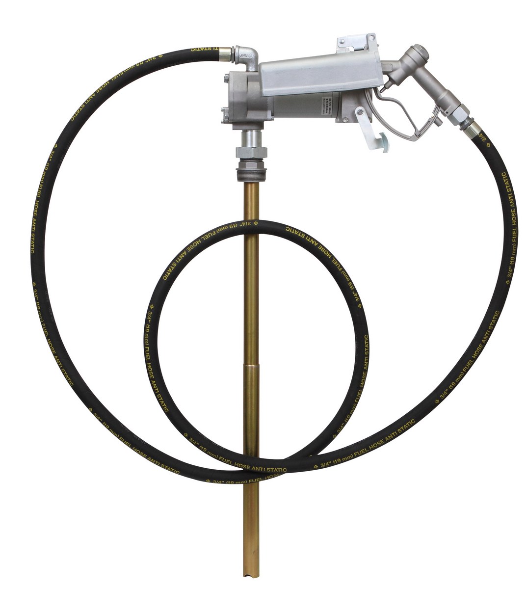 Heavy duty industrial grade high flow fuel pump is designed for everyday use in agriculture, construction, automotive, and industrial applications. Rain and weather proof for outdoor applications. Lightweight, yet strong, non-corroding aluminum die cast construction. Geared design makes the pump tolerant to contaminants in fuel. cUL listed motor. Duty cycle: 30 minutes ON / 30 minutes OFF. Recommended use: Gasoline, Diesel, E15 Fuel, Kerosene, Bio Diesel (B20).