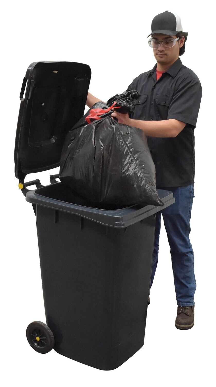 Durable high density polyethylene (HDPE) construction with stands subzero cold and extreme summer heat. Great for high traffic areas such as: warehouses, fairs, ball parks, schools, etc. Each container includes two wheels for easy portability. Hinged lid keeps rain out. Keep your waste out of eyesight in our heavy duty and easy to move refuse containers.