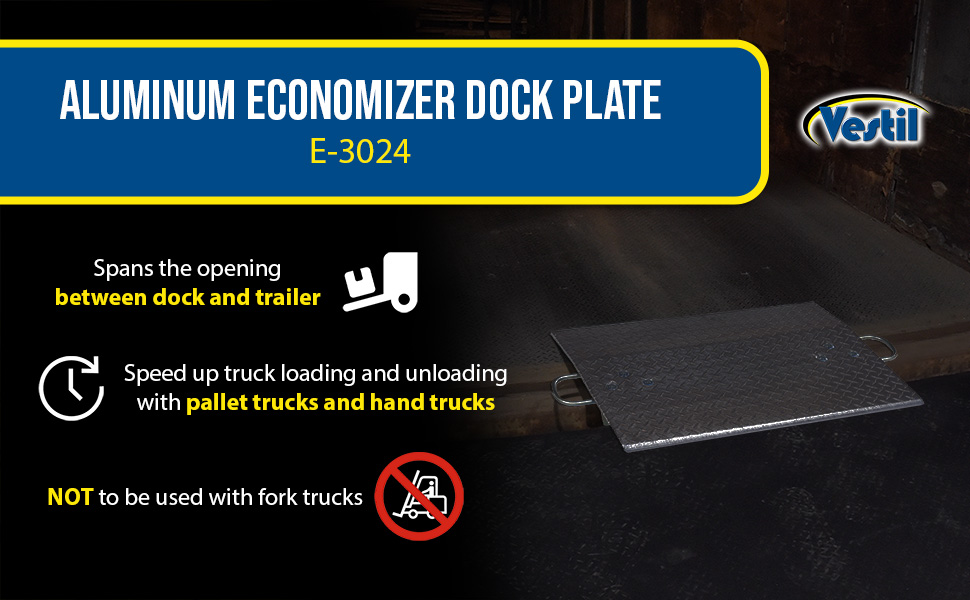 E-3024 E-3024Aluminum Economizer Dock Plate Usable 30 In. x 24 In. 3/8 In. Plate Thickness 3000 Lb. CapacityUniform Capacity (lb.): 3000