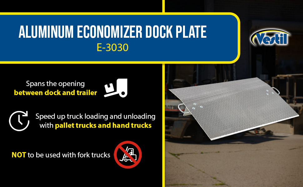 E-3630 E-3630Aluminum Economizer Dock Plate Usable 36 In. x 30 In. 3/8 In. Plate Thickness 3000 Lb. CapacityUniform Capacity (lb.): 3000