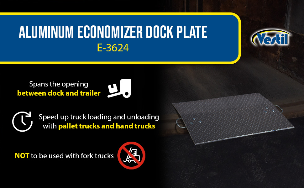 E-3624 E-3624Aluminum Economizer Dock Plate Usable 36 In. x 24 In. 3/8 In. Plate Thickness 3600 Lb. CapacityUniform Capacity (lb.): 3600