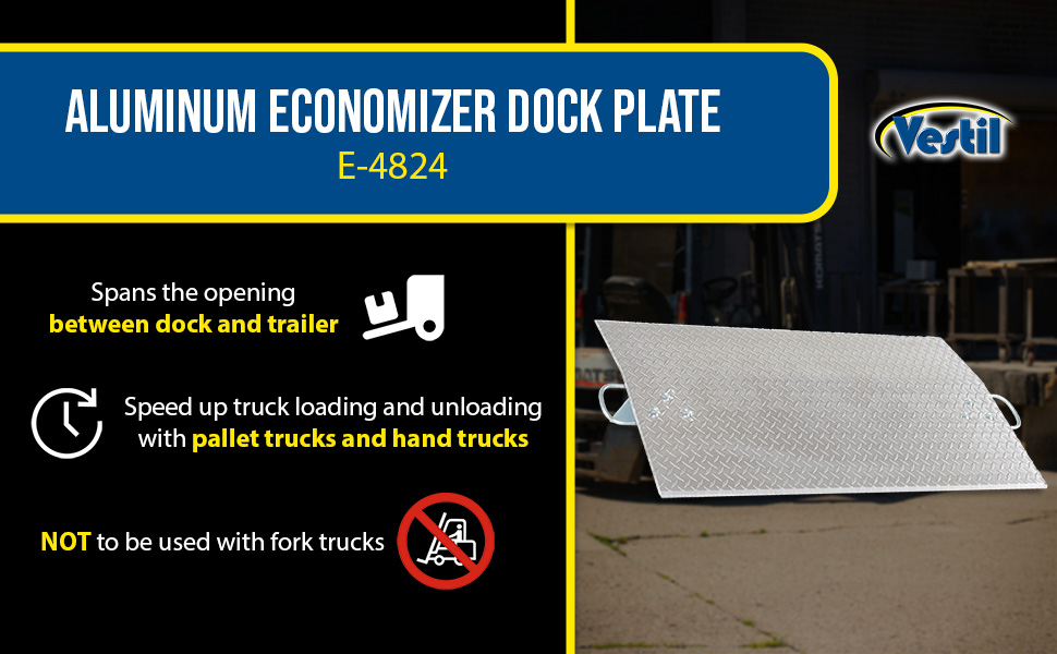 E-4824 E-4824Aluminum Economizer Dock Plate Usable 48 In. x 24 In. 3/8 In. Plate Thickness 5200 Lb. CapacityUniform Capacity (lb.): 5200