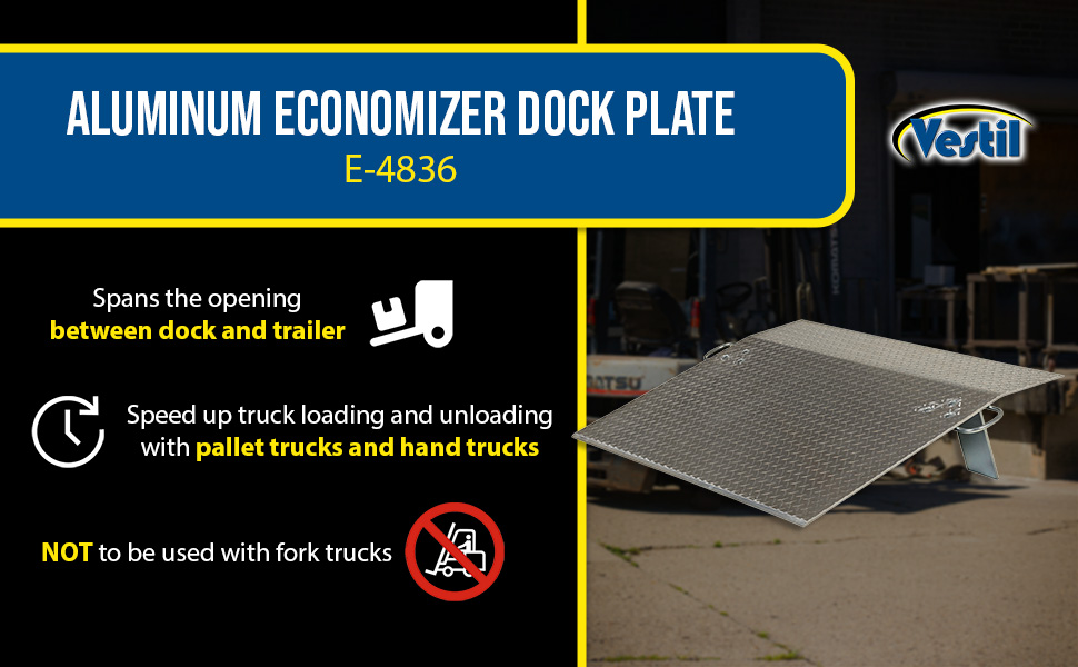 E-4836 E-4836Aluminum Economizer Dock Plate Usable 48 In. x 36 In. 3/8 In. Plate Thickness 3500 Lb. CapacityUniform Capacity (lb.): 3500