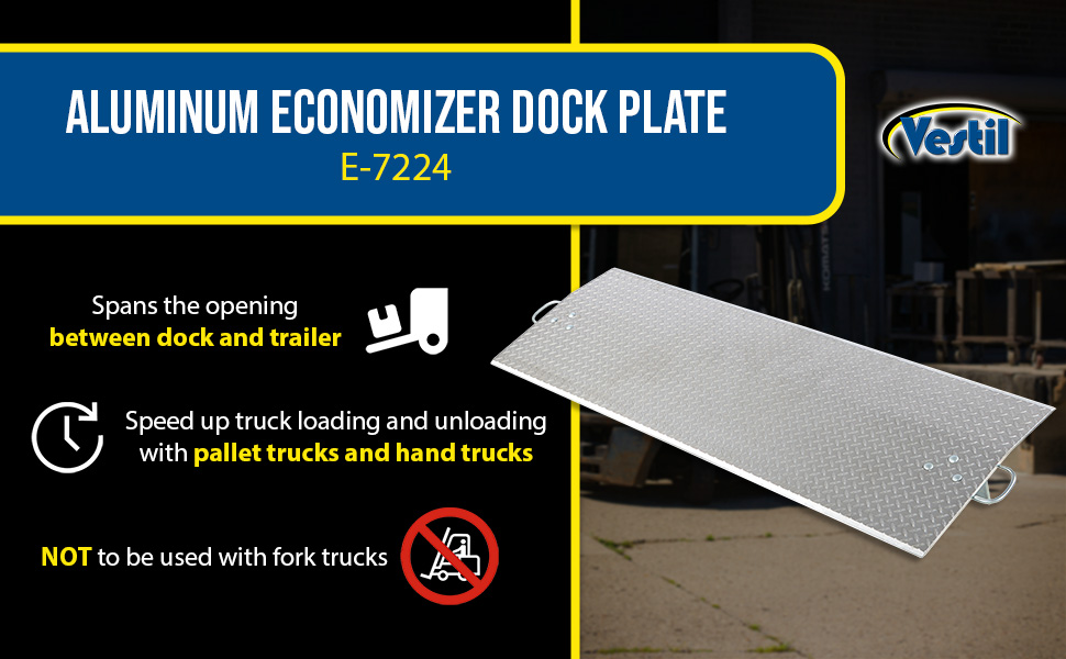 E-7224 E-7224Aluminum Economizer Dock Plate Usable 72 In. x 24 In. 3/8 In. Plate Thickness 6500 Lb. CapacityUniform Capacity (lb.): 6500