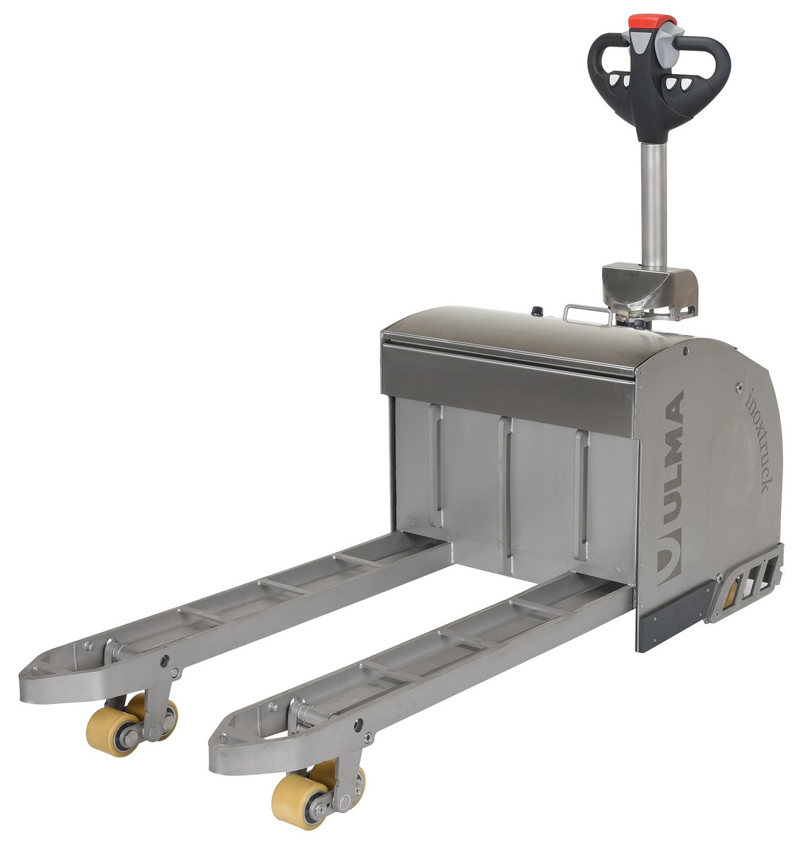 The 304L Stainless Steel Electric Pallet Truck is an ideal supplement to food service and other sterile settings. The 304L stainless steel construction including hydraulic cylinders as well as the piston provides not only a strong structure for transferring heavy loads between work areas, but is also easily washable. An enclosed shelter for electronic components that is simple to access for general upkeep, while the humidity resistant electronics are great for working in difficult conditions. The adjustable height handle with built in horn helps maintain an ergonomic posture of the user during use. The emergency stop is perfectly located near the driving position of the unit for a rapid shut-down in the case of a crisis. During use the unit maneuvers efficiently on its waterproof roll wheels. Unit comes standard in 304 Stainless Steel (316 Stainless Steel is an option, contact factory for pricing). Battery is 24V.
