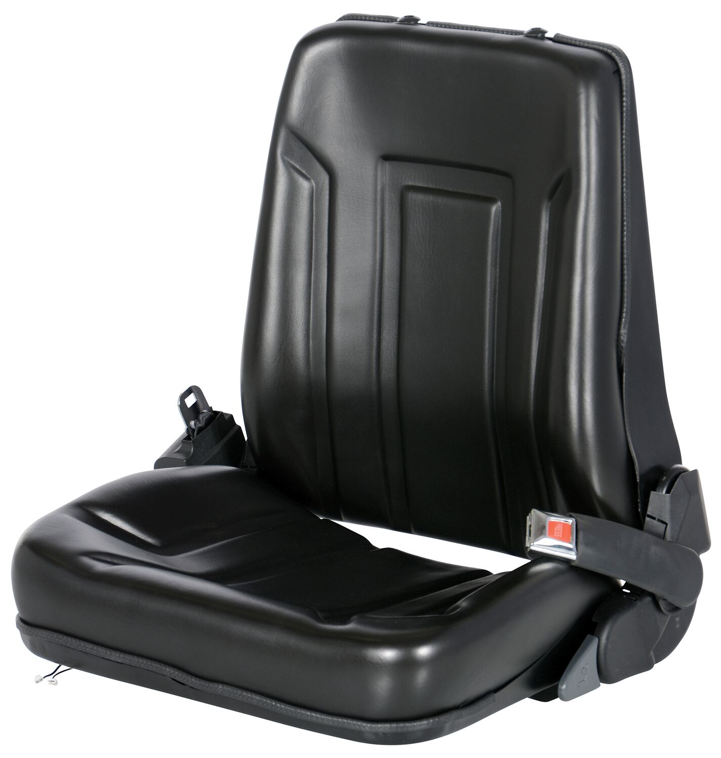 Ergonomic and comfortable seat design helps provide optimum body support for individual operators. Replace worn or broken fork truck seats with our easy to install universal mounting design. Standard features include: ergonomic seat design, vinyl or cloth material, low profile design, safety seat switch, storage pockets, seat back angle adjustment 8 degrees, and retractable safety belt.