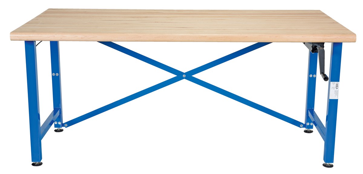 EWB-6030 EWB-6030Steel/Wood Manual Adjustable Ergonomic Work Bench 60 In. x 30 In. 750 Lb. Capacity Blue/TanUniform Capacity (lb.): 750