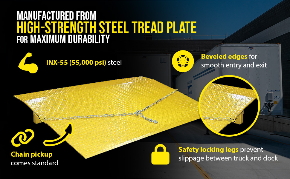 | Steel Truck Dock Plate 48 In. x 72 In. x 9-9/16 In. 4,820 Lb. Capacity Yellow | Uniform Capacity (lb.): 4820 Height Difference (in.): 7 | 413 |
