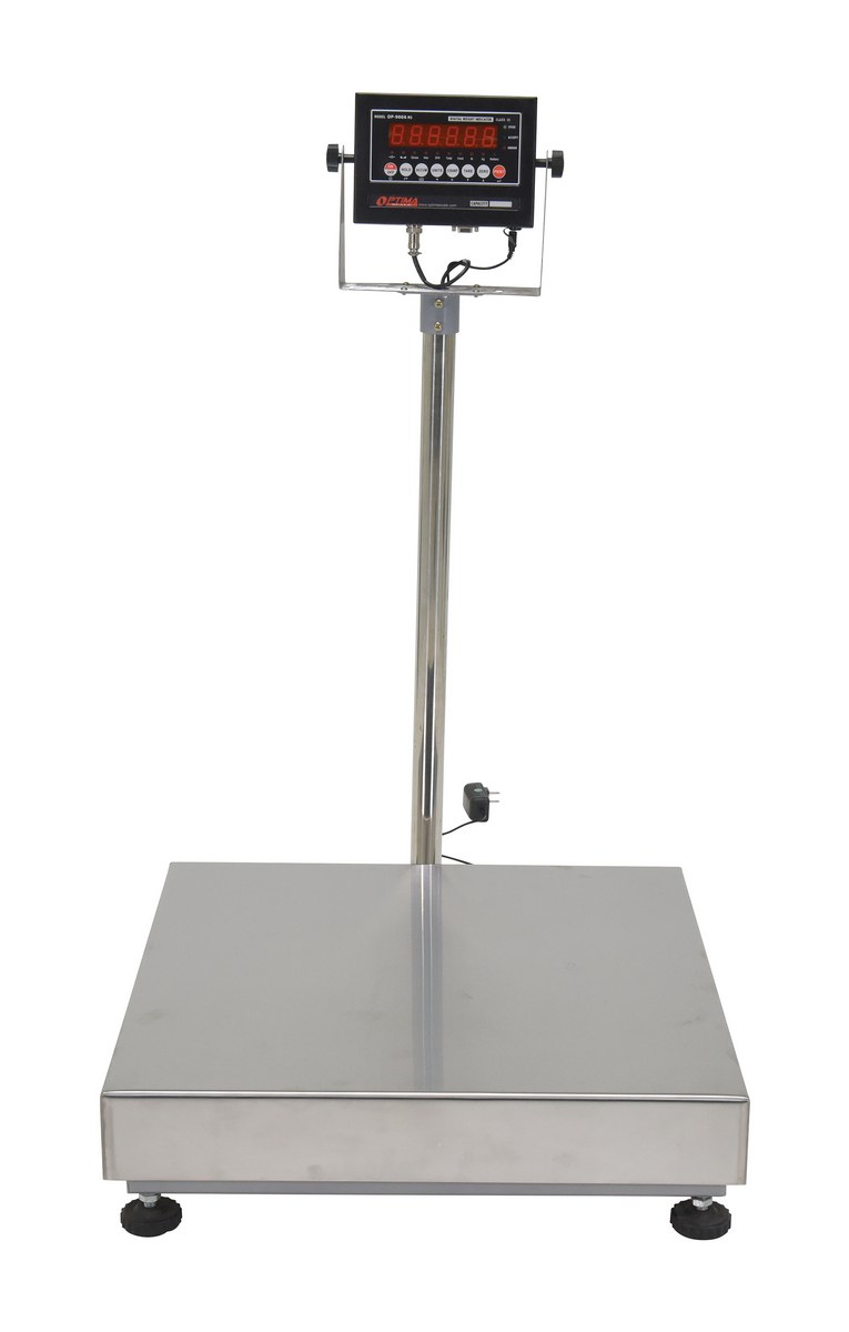 Designed for speed, accuracy, and high usage. Ideal for busy shipping docks, outdoor markets, and food processing. Mild steel platform, interlocking 304 stainless steel tray for easy cleaning. Adjustable tilt display for convenient viewing angles. Rechargeable battery and AC adapter. Aluminum environmentally sealed single point load cell. Adjustable feet provides exceptional traction. Removable column for indicator to work up to 4ft from the base. International protection IP65. Weight and count. Connection Port RS-232. LCD display (lbs, kgs, ounces, and grams).