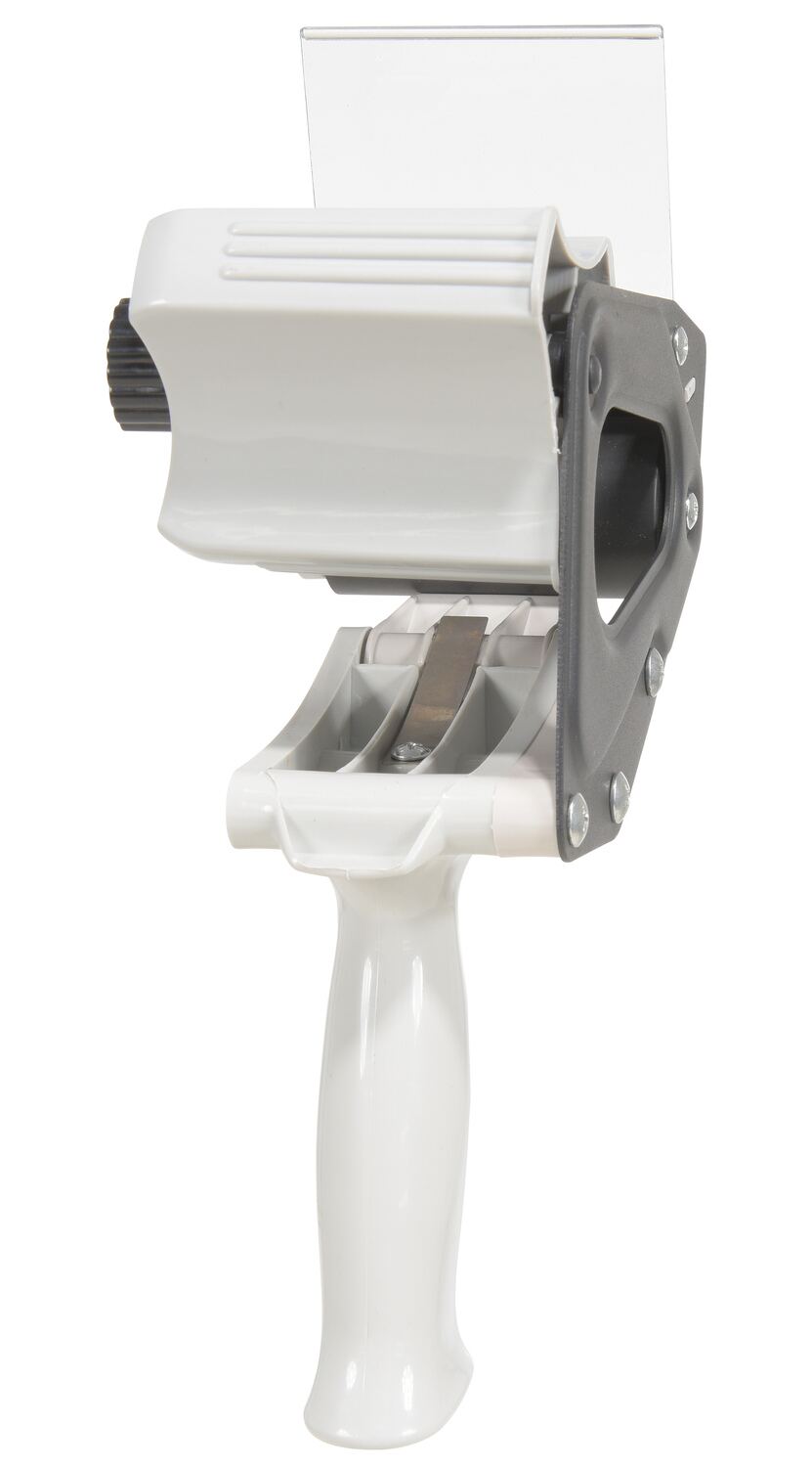 The hand held Tape Dispenser is great for the distribution and packaging facilities. The plastic construction is designed for comfortable lightweight use during long periods of constant use. Simply fit tape unit into dispenser and pull over the roller opening. Once onto the roller, the user can dispense the tape smoothly to the required length. Fits 3" wide tape rolls.