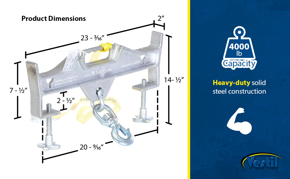 D-FORK-4-SL D-FORK-4-SLSteel Double Swivel Hoist Optioning Hook 2 In x 23-3/16 In x 14-1/2 In 4000 Lb. Capacity SilverUniform Capacity (lb.): 4,000