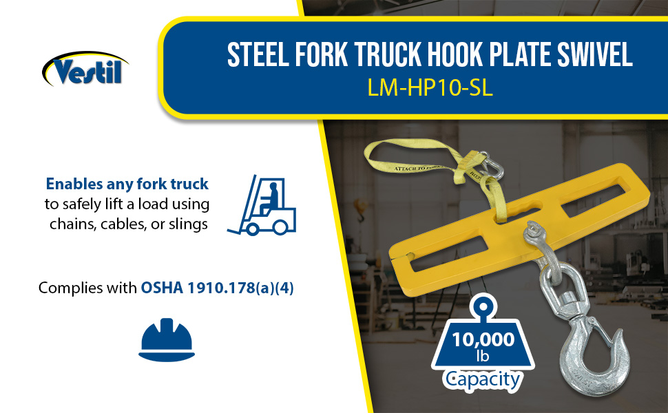 LM-HP10-SL LM-HP10-SLSteel Fork Truck Hook Plate Swivel with Latch 10,000 Lb. Capacity YellowUniform Capacity (lb.): 10,000