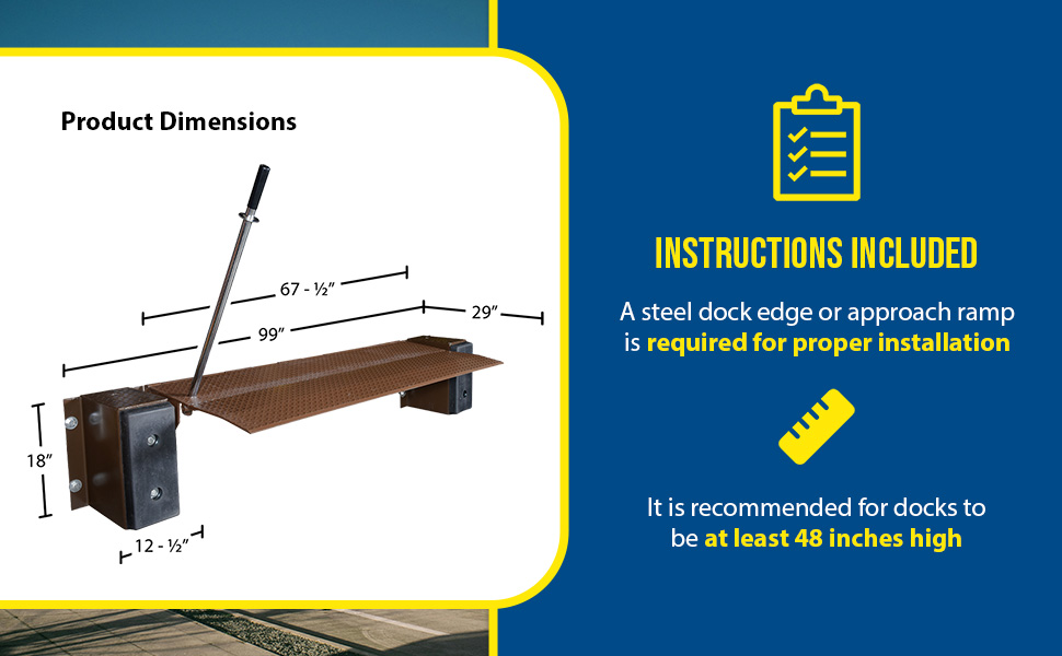 | Steel Mechanical Edge-O-Dock Leveler 48 In. Ramp Width 6,000 Lb. Capacity Brown | Uniform Capacity (lb.): 6000 Service range above dock (in.): 5 | 348 |