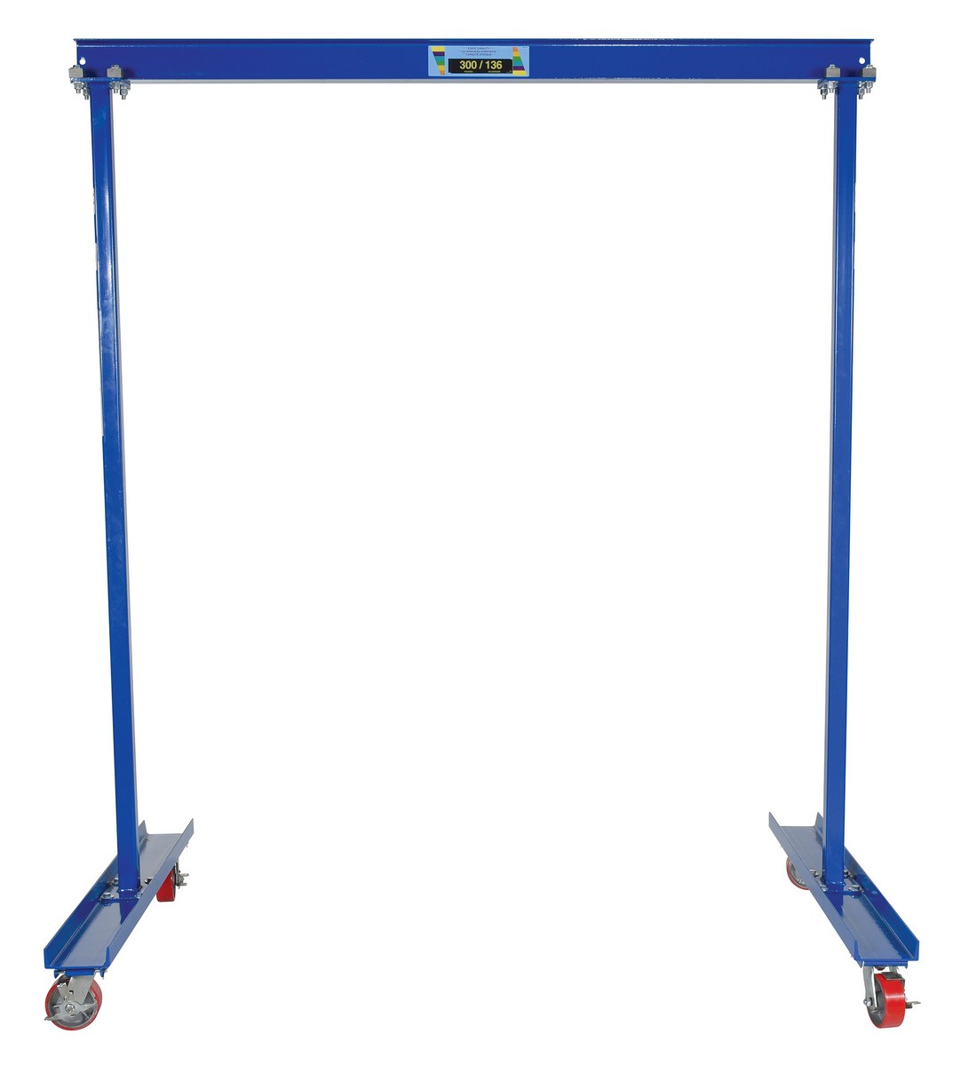 Designed to maximize material handling requirements in light-duty lifting applications. Lightweight fixed height design allows for easy mobility. Includes (4) 5" x 2" poly-on-steel swivel casters with brake. Overall I-beam length is 79-3/4". Do not move units while loaded. Steel construction with a blue baked in powder coat finish for added toughness. Bolt together installation. Hoists & Trollies sold seperately.