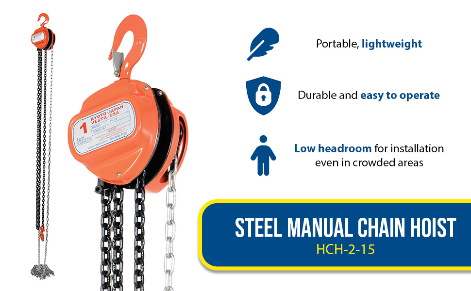 | Steel Manual Chain Hoist 20 Ft. Lift 2,000 Lb. Capacity Orange | Uniform Capacity (lb.): 2,000 Standard Lift (ft.): 20 | 37 |