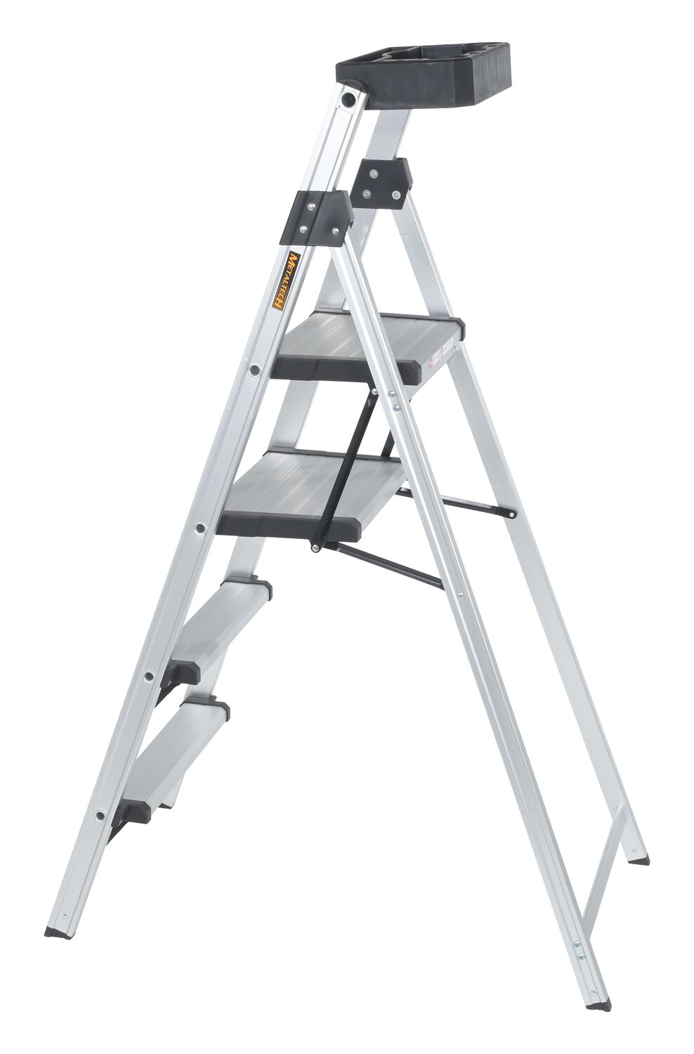These durable, lightweight, multipurpose ladders are perfect for homes, offices, schools, and industrial warehouses. The compact design can quickly be compressed from a standard step stool into a flat profile, making it perfect for storage and on the go. With safety always being the number one priority, the large platform steps provide room for secure climbing and descending from the step stool.