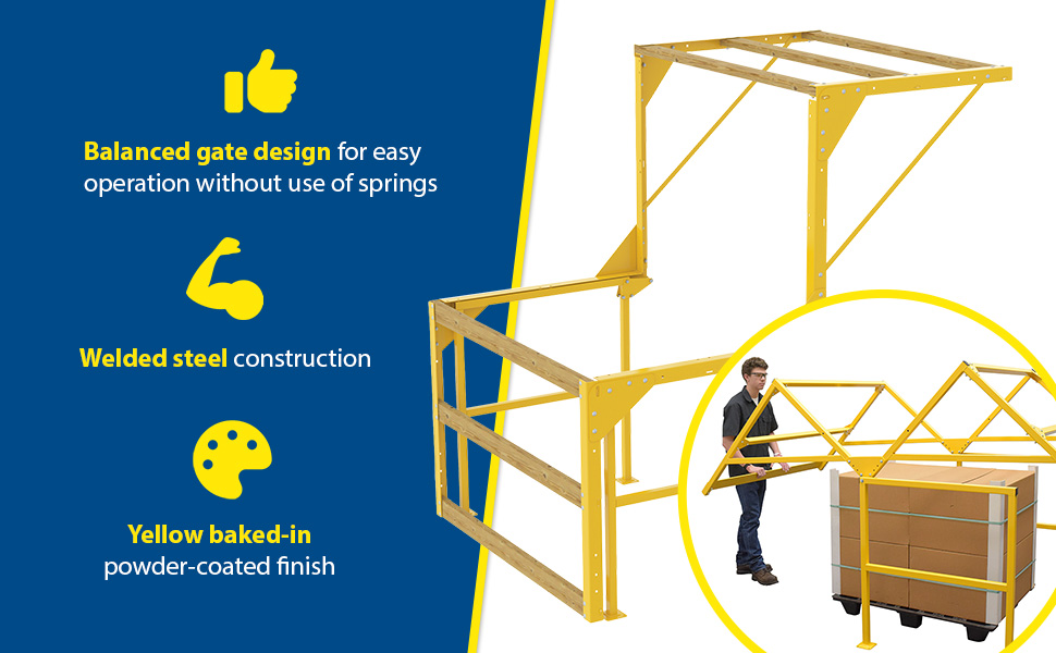 The MEZZ-KD-88T-93D ships knockdown to the customer. The 6 wooden cross rails are not included and must be supplied by the customer. Cross rails can have a maximum overall length up to 96" The MEZZ-200-BT has a bolt-together design, so the gate can be constructed, disassembled, or easily transferred to a new location. Other Mezzanine Safety Gates: Sliding Mezzanine Safety Gates | Rotating Mezzanine Gate System |